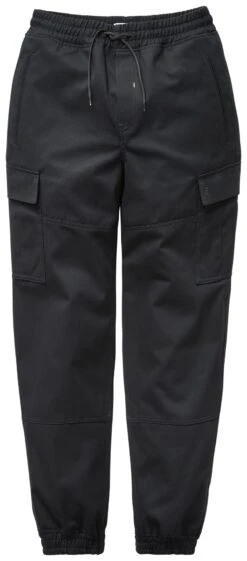 Comfortabele joggpants in cargobroekstijl, d.w.z. met opgestikte dijbeenzakken met kleppen. De broek zonder sluiting heeft een elastische tailleband met een bindband, en de pijpen hebben eveneens een elastische tailleband. Naast de dijbeenzakken heeft de broek ook twee steekzakken en een achterzak. De gebruikte katoen is afkomstig van gecontroleerde biologische teelt.