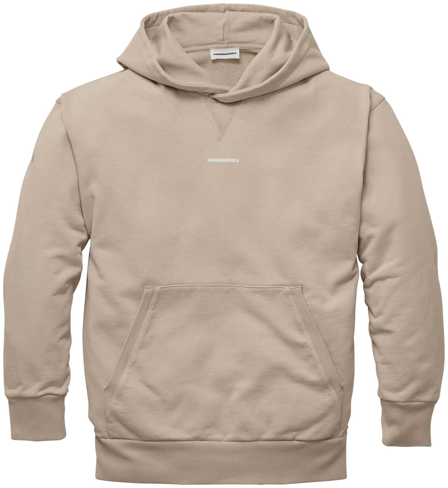 Een klassieke, sportieve hoodie: geen franje, met dubbele stof op de capuchon en kangoeroezak. Ribboorden maken de mouwen en de romp af. Armedangels maakt de hoodie van puur katoen, waarvan ongeveer driekwart afkomstig is van gecontroleerde biologische teelt en ongeveer een kwart van recycling.