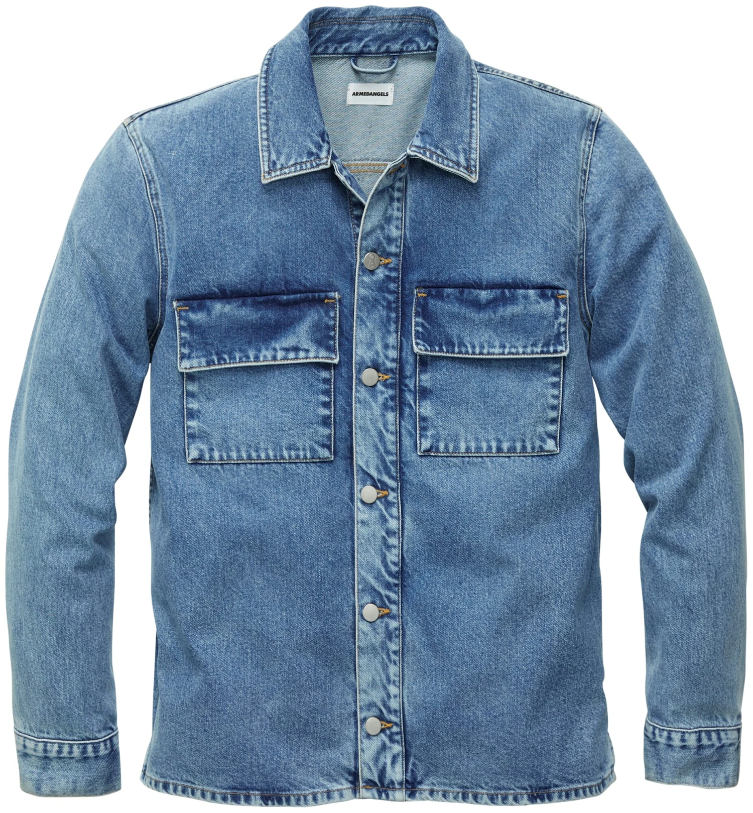 Armedangels maakt dit opvallende overhemdjasje van een middelzware denim die een sterk uitgesproken “used look” vertoont. Die ook consequent is omdat hij volledig van gerecycled katoen is gemaakt. Het overhemdjasje sluit met metalen knopen, het is voorzien van twee opgestikte klepzakken op de borst.