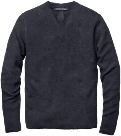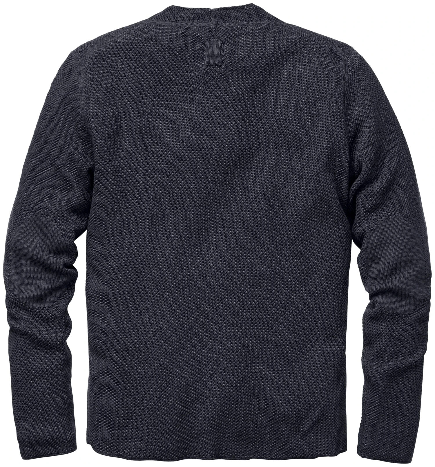 Casual trui zonder manchetten, met ingebreide elleboogstukken en flatlocknaden.