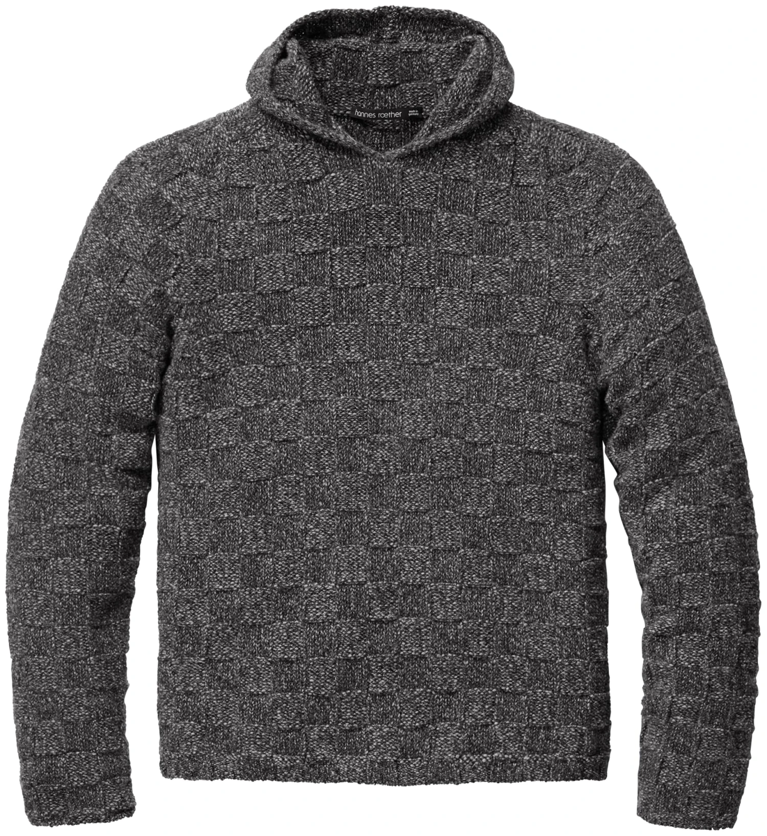 In deze casual hoodie combineert Hannes Roether verwarmende scheerwol met huidvriendelijke katoen. Het breisel vertoont een opvallend, sculpturaal schaakbordpatroon en de hoodie als geheel heeft een mooi gemêleerd effect. Mouwen en romp zijn afgewerkt zonder knellende manchetten.
