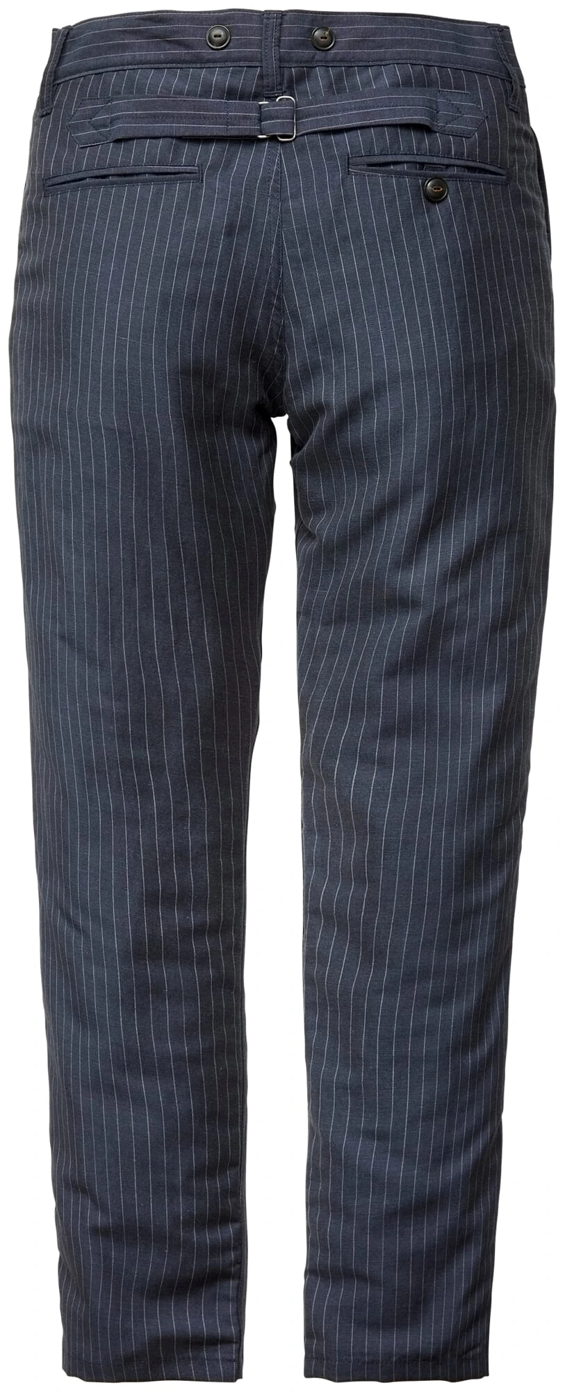 De Buccanoy Pants hebben hun formele oorsprong in Britse pakbroeken uit de jaren 1920. Hun snit wordt gekenmerkt door een smal silhouet. De opvallende stof, gemaakt van linnen en wol, heeft een krijtstreeppatroon. Pike Brothers rust de broek uit met een knoopsluiting, bretelknopen en een “cinch back strap” voor matige wijdteverstelling in de achterste tailleband. Twee zijzakken, een muntzakje en twee achterzakken, waarvan één met knoop, houden kleine voorwerpen voor dagelijks gebruik.