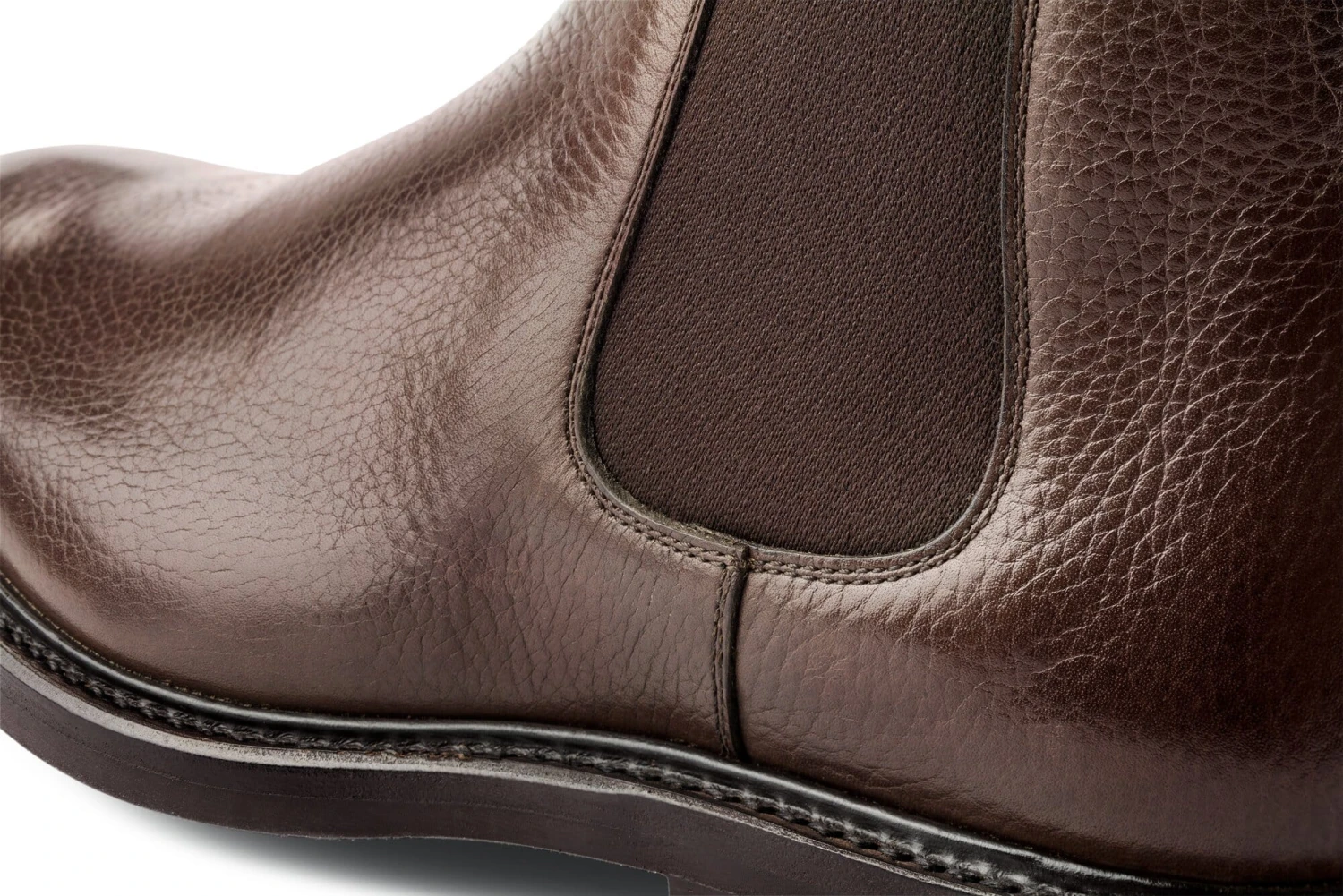 Qua vorm is dit een klassieke Chelsea laars: over de enkel hoog en met rubberen inzetstukken aan de zijkanten die zorgen voor een goede pasvorm bij de enkel en de schoen elasticiteit en comfort geven. Zelfs na uren dragen zit het comfortabel, een voordeel waaraan ook de zachte kalfslederen voering bijdraagt. De doorgestikte Britse Dainite-zool, een grotendeels gladde zool met enkele platte ronde noppen, maakt de schoen met mate slip- en weerbestendig zonder afbreuk te doen aan het elegante uiterlijk.