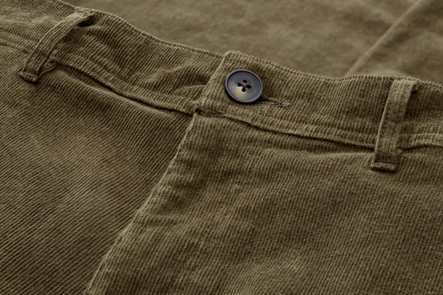 Fijn corduroy is een corduroy stof met meer dan 40 ribbels per tien centimeter stofbreedte. Het ziet er dienovereenkomstig fijn uit en voelt dienovereenkomstig zacht en fluweelachtig aan. Knowledge Cotton Apparel gebruikt het voor deze casual, recht gesneden broek. De broek sluit met een rits en een knoop en heeft twee steekzakken en twee achterzakken. Het gebruikte katoen is afkomstig van gecontroleerde biologische teelt. Een beetje elastaan verhoogt het comfort en de vormvastheid.