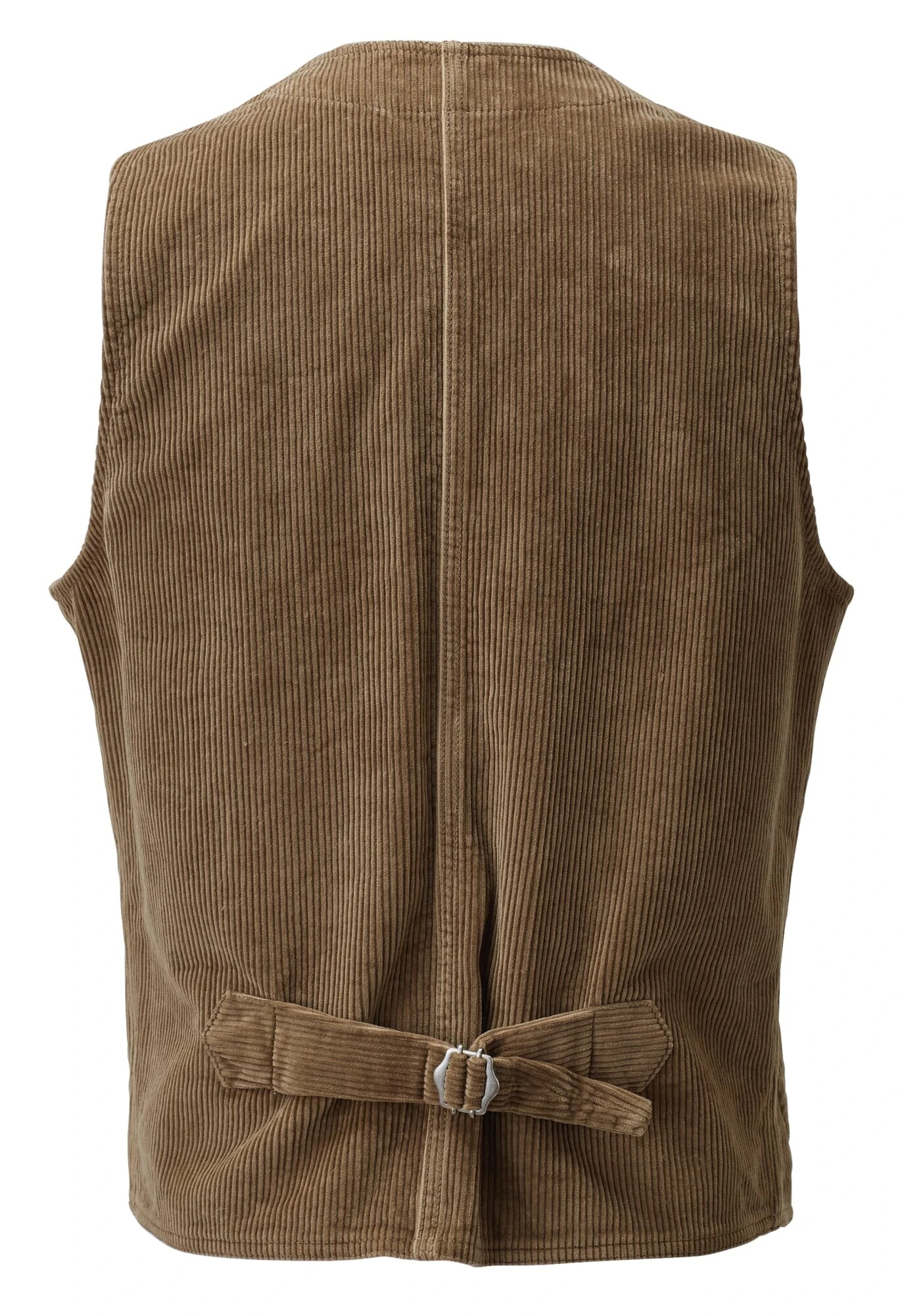 Dit type gilet is in de VS sinds de jaren 1930 bekend – als jachtgilet. Typisch zijn de grote “spelzakken”, die bereikbaar zijn via een verticale opening rechts en links van de knoopsluiting. Het is ook uitgerust met drie opgestikte zakken. Een verstelbare staaf in de rug maakt een gematigde aanpassing van de breedte mogelijk. Tellason maakt het gilet van een gedraaid genuakoord van het Duitse bedrijf Kindermann, dat gespecialiseerd is in stoffen voor werkkleding. De gebruikte katoen is afkomstig van gecontroleerde biologische teelt. Om intercontinentaal transport te vermijden, laat Tellason het gilet vervaardigen in een partnerbedrijf in Noord-Italië.