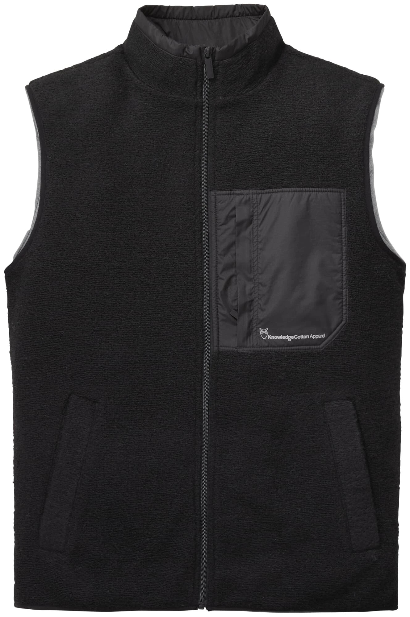 Fleece vesten zijn meestal comfortabel en bestand tegen de kou, waardoor ze een populair kledingstuk zijn in het overgangsseizoen. Knowledge Cotton Apparel produceert een vest waarvan de fleece gemaakt is van gerecycled polyester en wol. Aan de binnenkant zit een ademende mesh voering van gerecycled polyester. Een elastische band in de zoom van de romp zorgt voor een goede afwerking. Het fleece gilet heeft een opstaande kraag, twee steekzakken en een opgestikte borstzak.