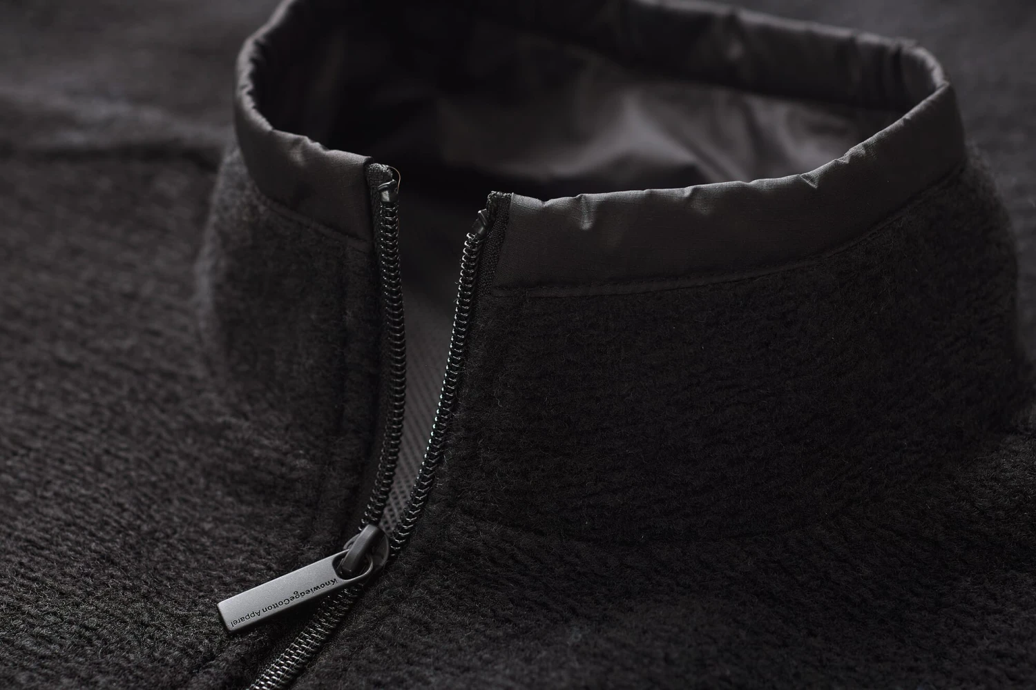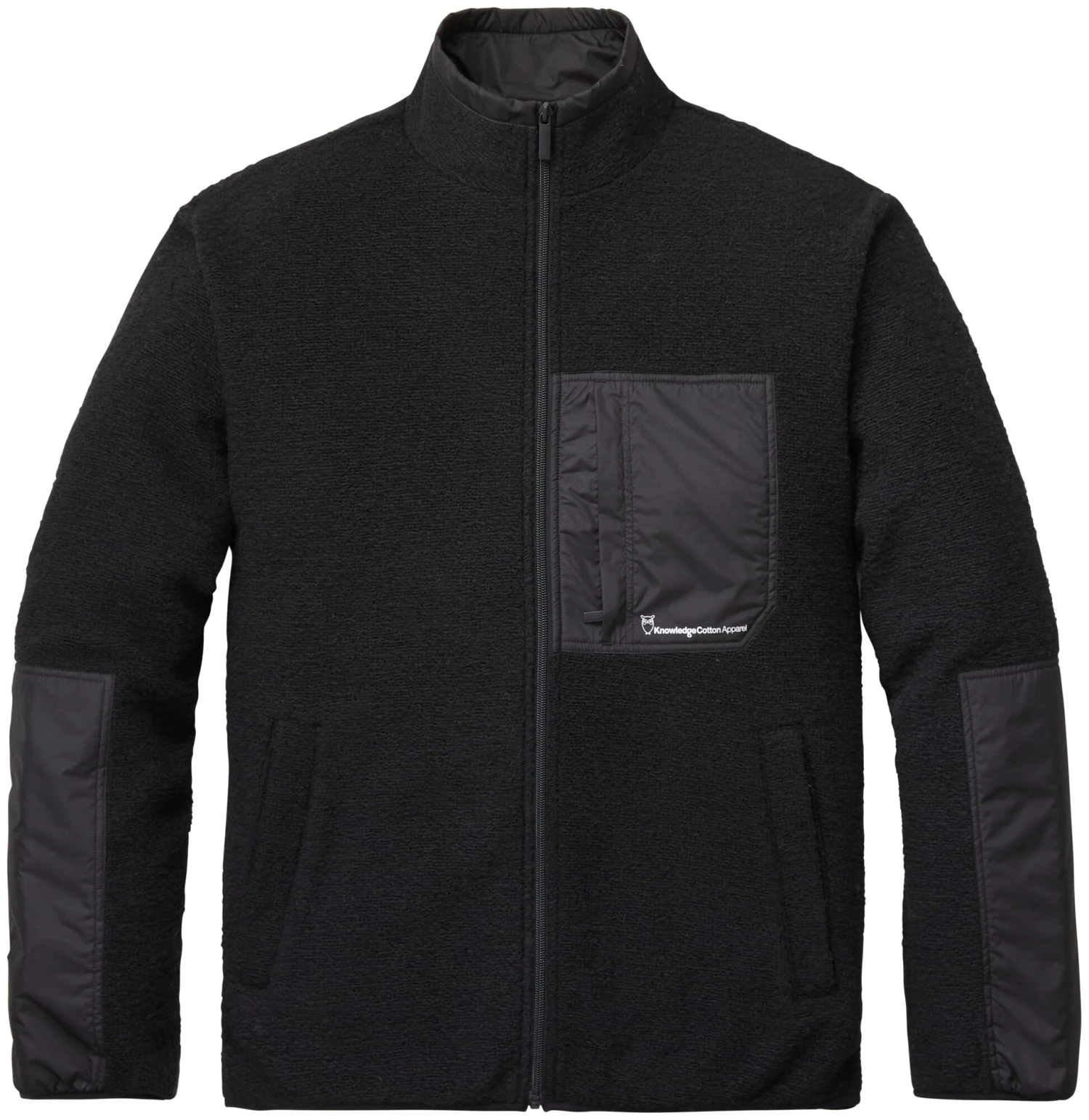 Fleecejacks zijn meestal comfortabel, enigszins vochtafstotend en koudebestendig, waardoor ze een populair kledingstuk zijn in het overgangsseizoen. Knowledge Cotton Apparel maakt een jack waarvan de fleece is gemaakt van gerecycled polyester en wol. Aan de binnenkant zit een ademende voering van mesh. De boorden aan de buitenkant van de onderkant van de mouwen en de opgezette borstzak zijn gemaakt van gerecycled polyester. Elastische manchetten en de zoom van de romp houden de wind buiten. Het fleecejack heeft een opstaande kraag en – naast de borstzak – twee steekzakken.