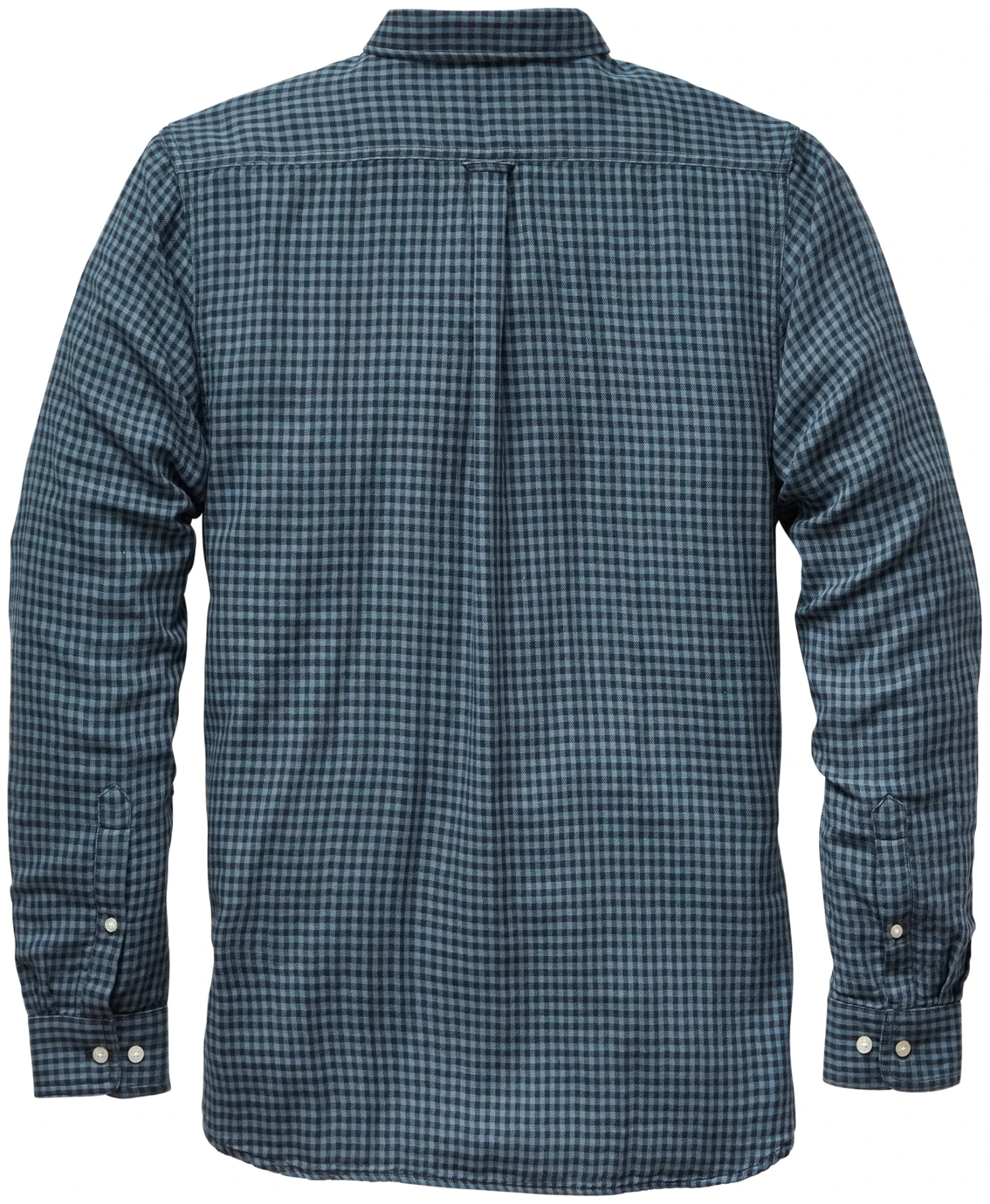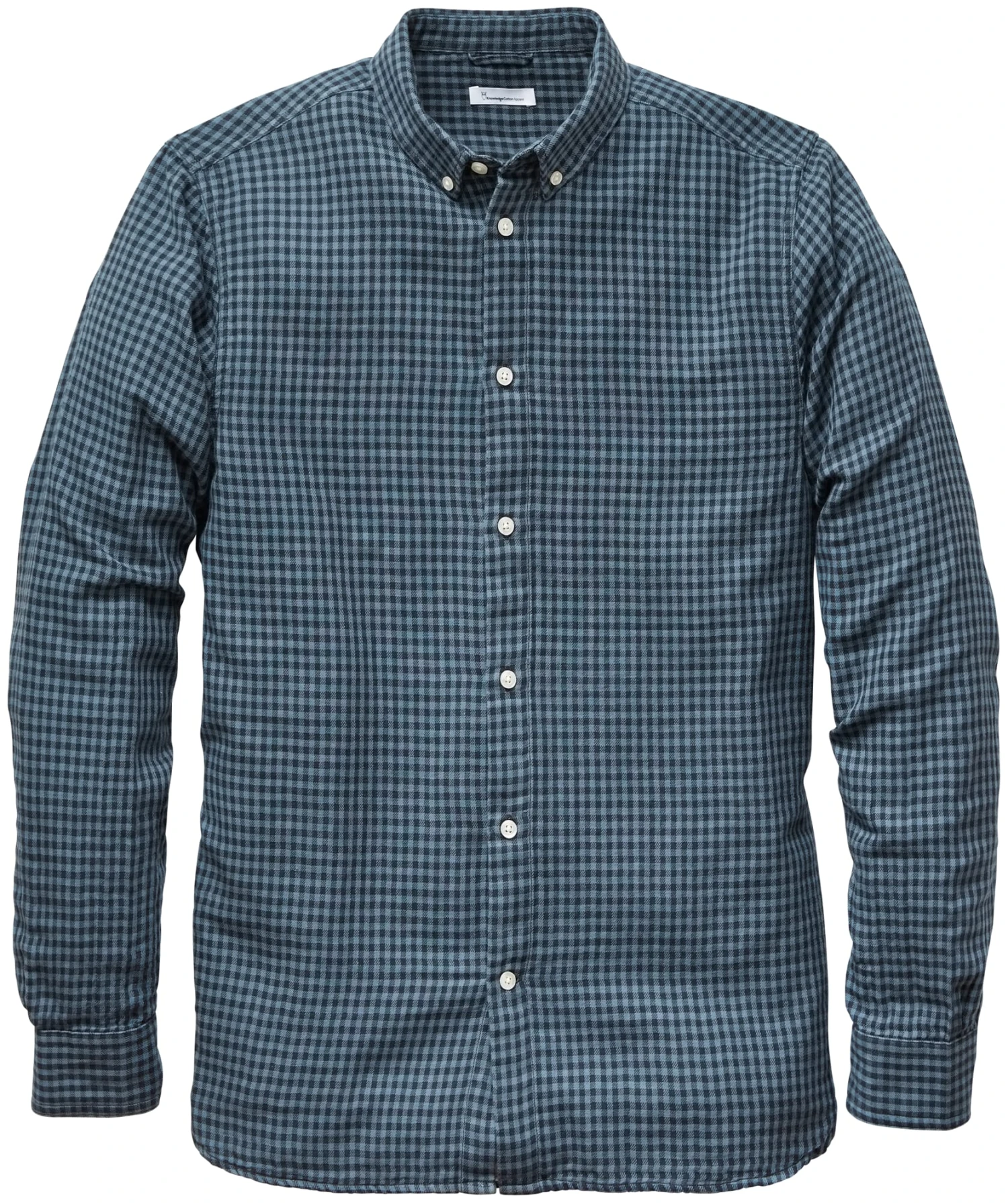 Knowledge Cotton Apparel maakt dit recht gesneden overhemd met button-down kraag. Plooien onder het schouderstuk verhogen het draagcomfort. Het ontwerp heeft een Vichy-ruitje. De gebruikte katoen is afkomstig van gecontroleerde biologische teelt.