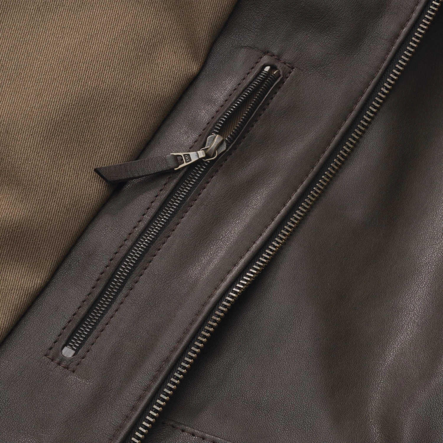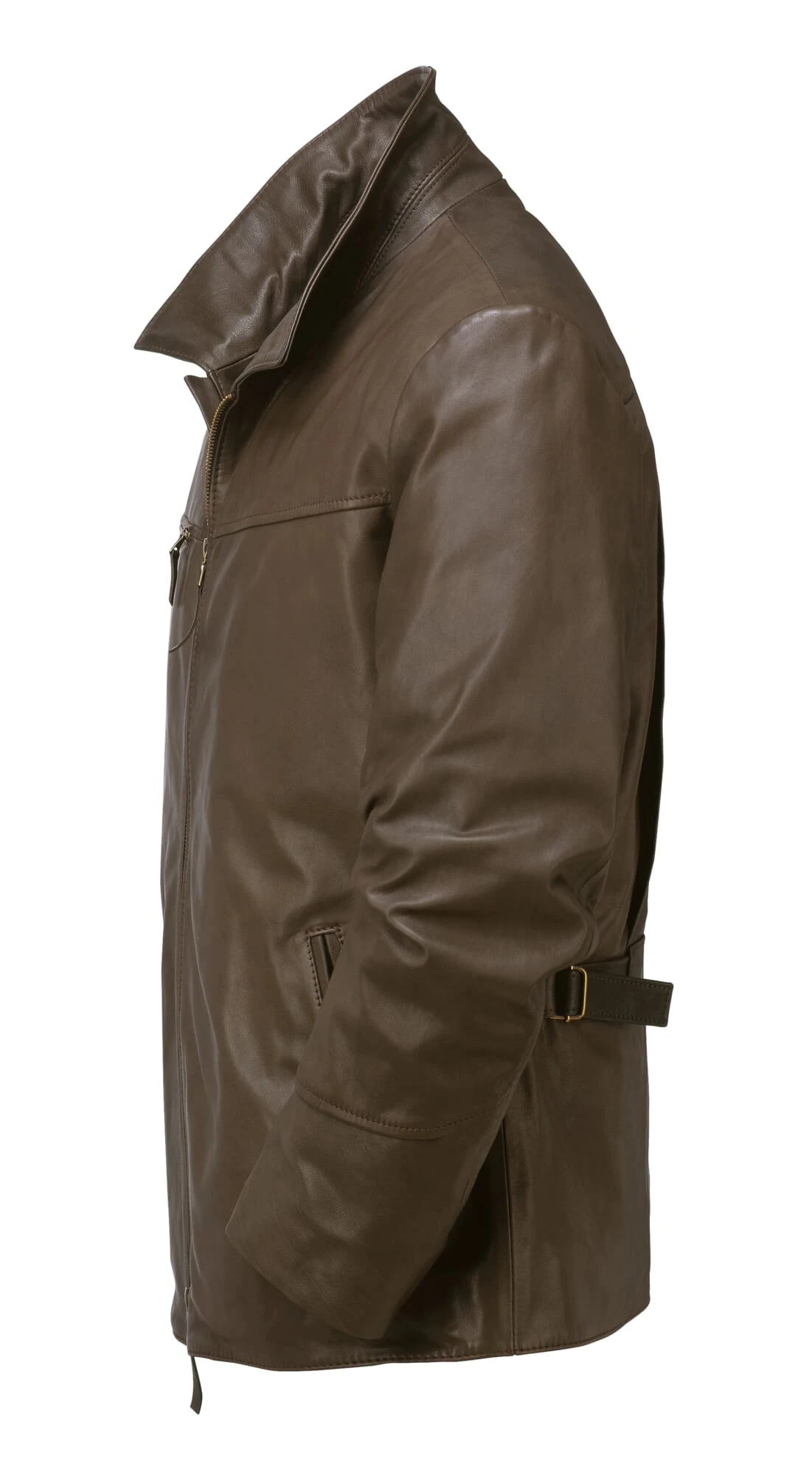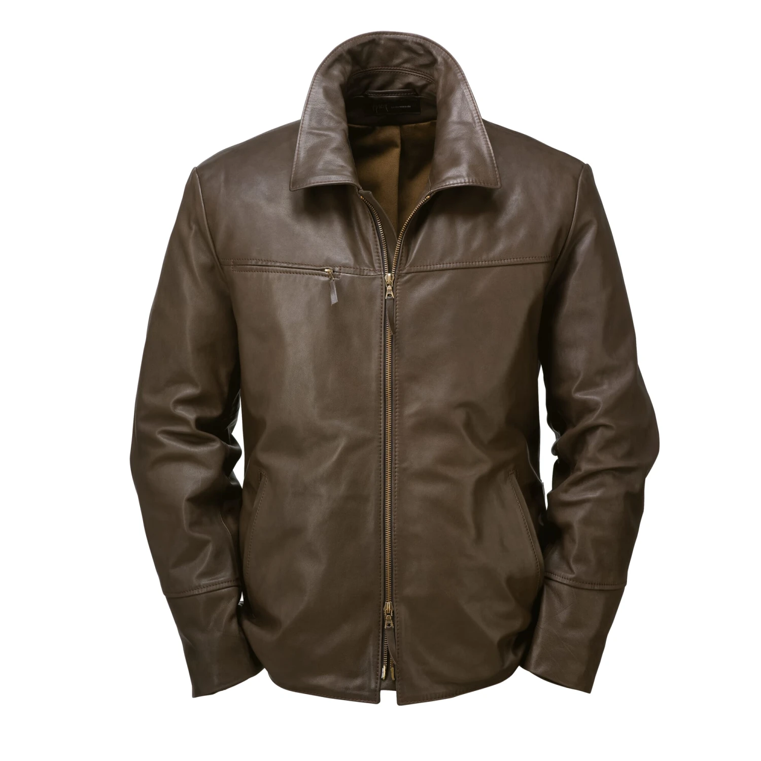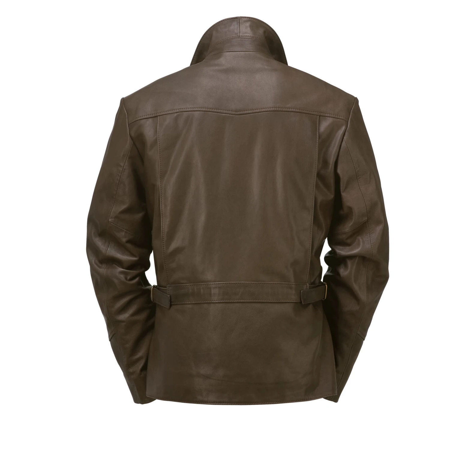 Deze jas, die is beïnvloed door motorkleding uit de jaren zestig, reikt tot over de billen. Het leer komt uit Duitsland, waar het traditioneel alleen met plantaardige looistoffen wordt gelooid. De sporen van het leven van een dier (doornscheuren, steken) worden bewust niet opgespoten en bedekt door de tonverven. Plooien die aan de zijkanten onder het rugjuk opveren vergroten de reikwijdte van de schouders bij voorwaartse bewegingen, wat ook een voordeel is in het leven zonder motor. De tailleomvang kan worden aangepast door middel van een riem op de rug. Twee grote paspelzakken zijn verwerkt in het onderste gedeelte van de voorkant. Een borstzak rechts in de scheidingsnaad van het schouderstuk sluit met een rits. Een flap onder de tweewegrits biedt bescherming tegen de wind. Een stevige katoenen keper dient als voering, en een sterke viscose keper in de mouw vergemakkelijkt het aantrekken.
