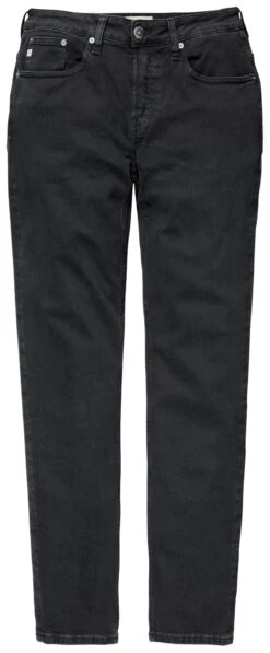 Jeans in klassieke 5-pocketstijl, met een gemiddelde taille en pijpen die taps toelopen naar de enkel. De jeans sluit met een sluiting en knoop, alle knopen en klinknagels zijn zilverkleurig met een satijnen afwerking. De stof bestaat voor 75 procent uit biologisch katoen en voor 20 procent uit gerecycled katoen. Een mengsel van twee procent elastaan verbetert het comfort en het vormbehoud. De jeans worden in familieverband geproduceerd in een duurzame fabriek in Tunesië.