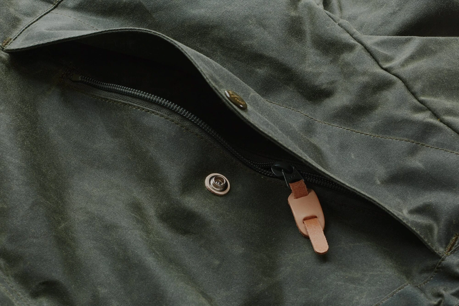 Alle weersomstandigheden. Gewaxte jas met capuchon