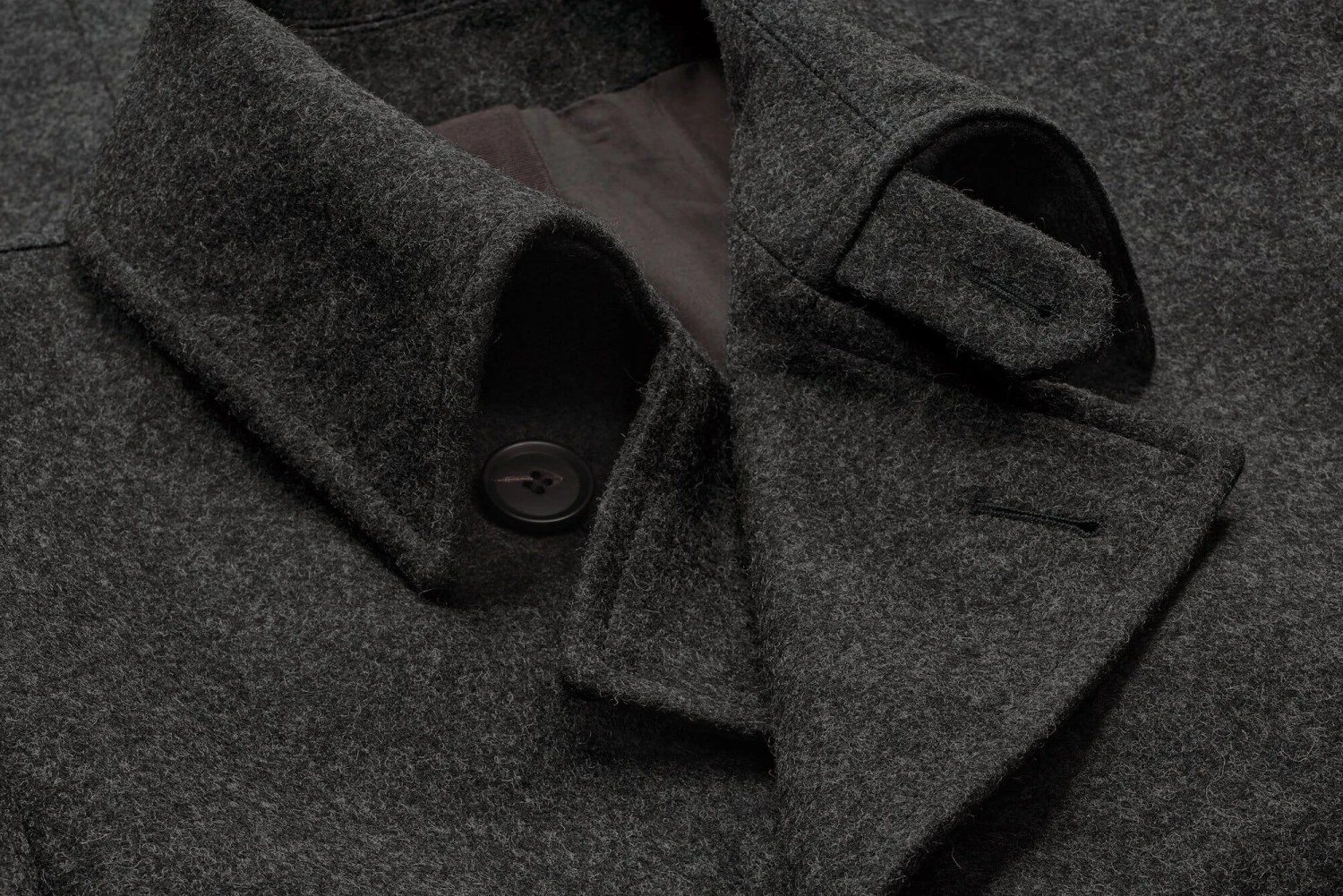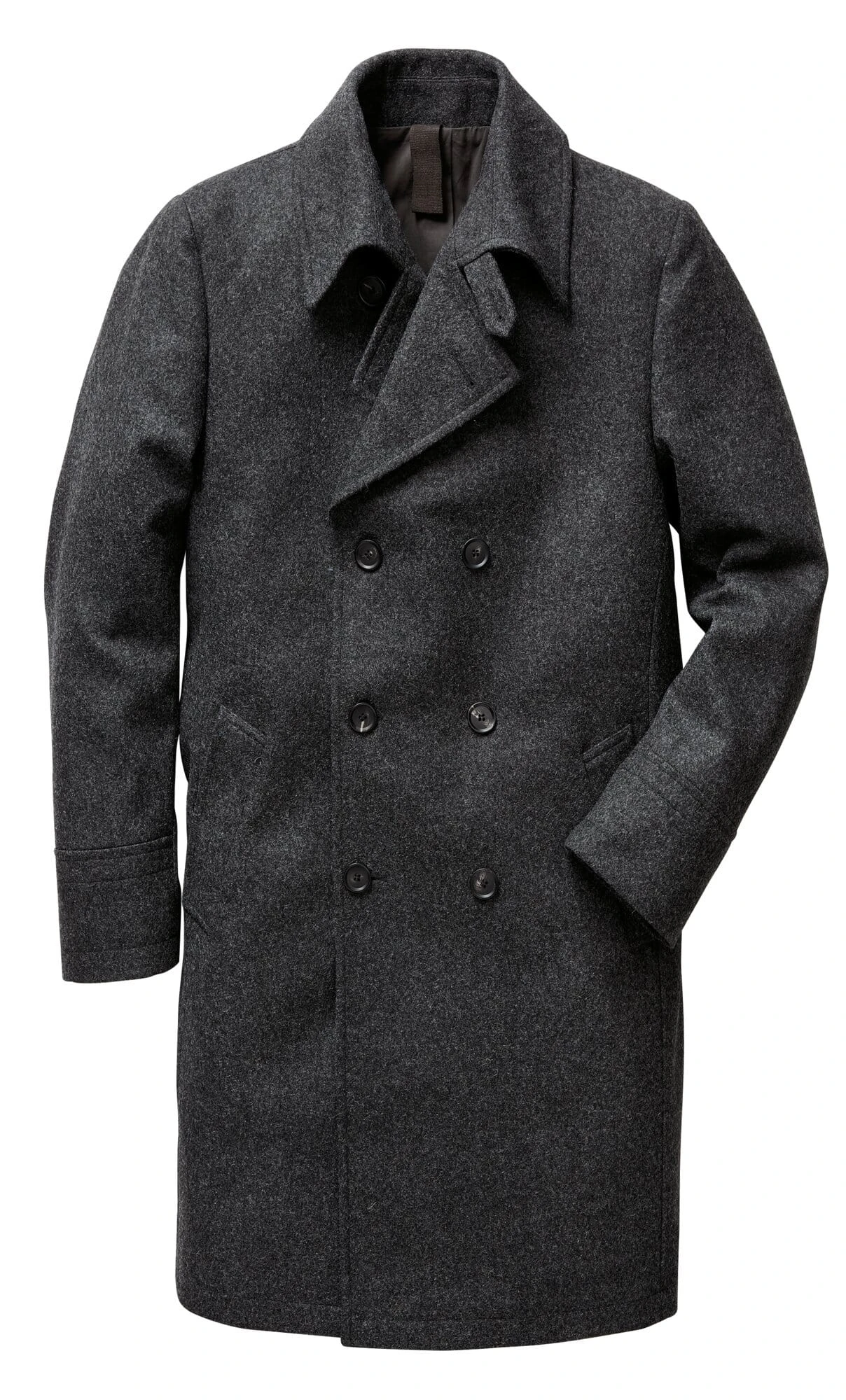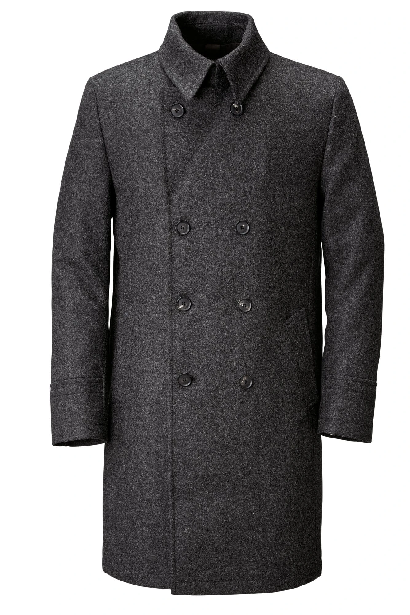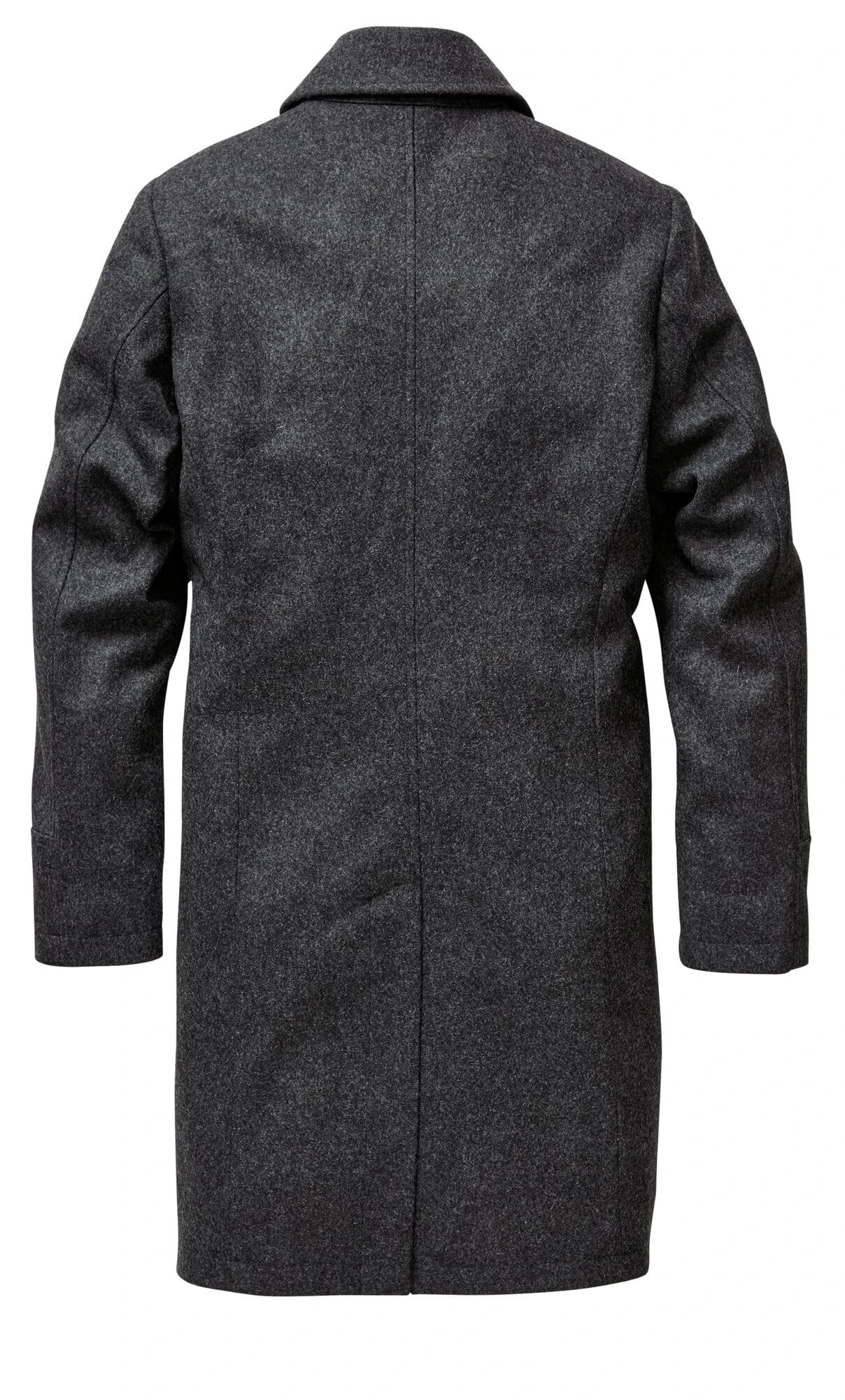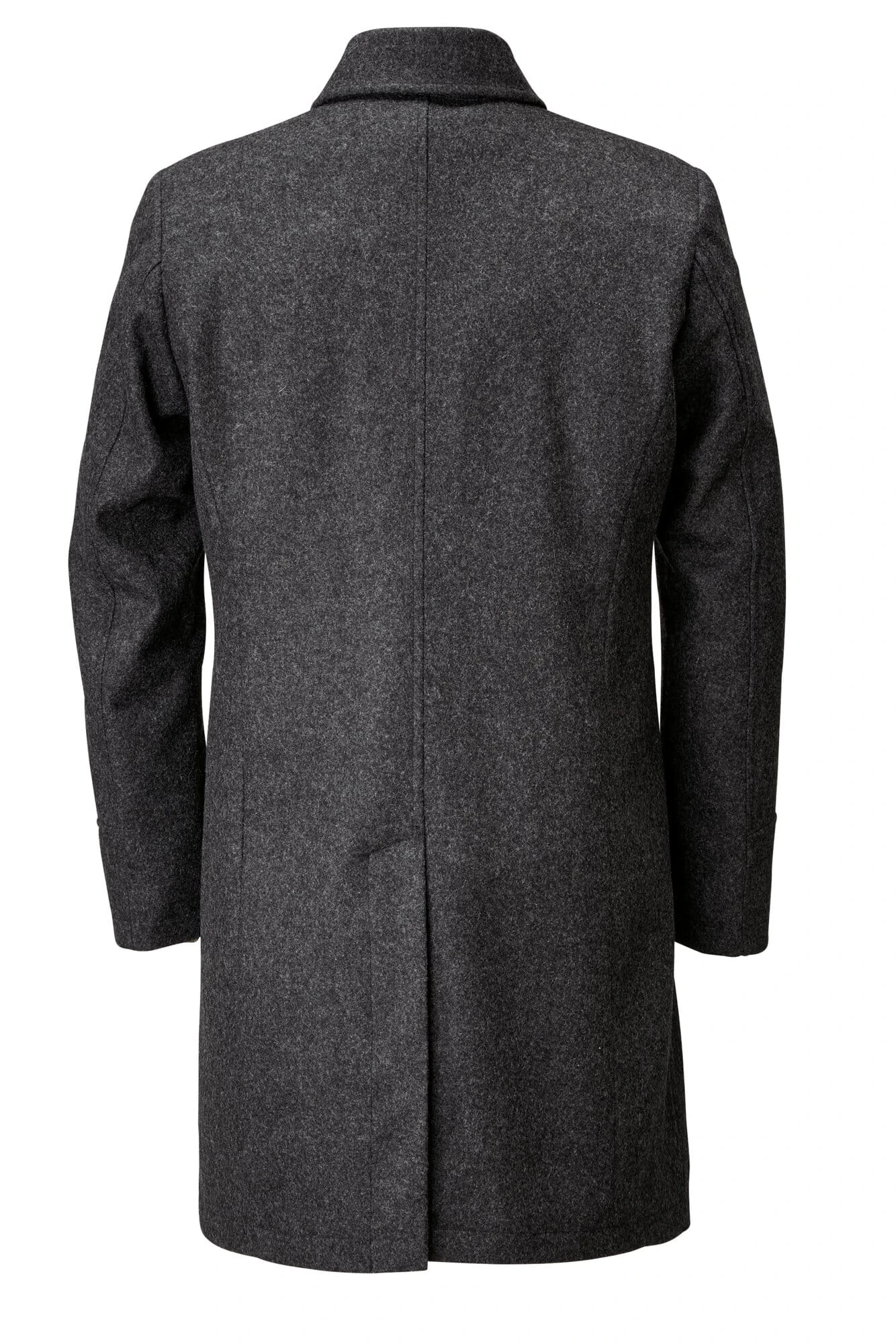 De warme, antracietkleurige loden stof van deze jas vertoont een mooi, levendig gemêleerd effect. Maar niet alleen het uiterlijk is overtuigend, ook de technische details. De zijzakken zijn bijvoorbeeld onder een lichte hoek geplaatst, zodat de handen er gemakkelijker in kunnen. De binnenzakken zijn in de buitenstof gezet, de revers kunnen desgewenst hoog gesloten worden met een kraagklink, en een rugopening verhoogt het draagcomfort.