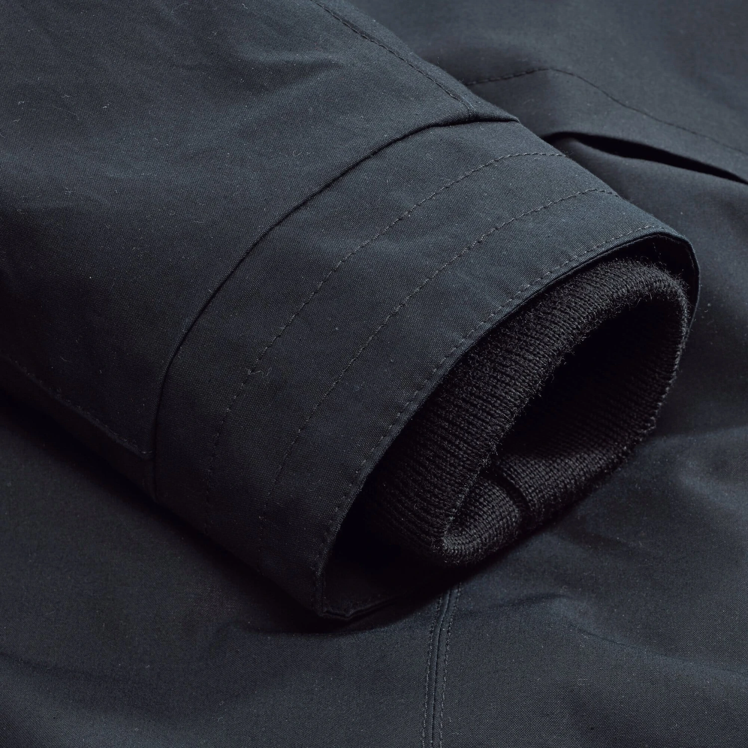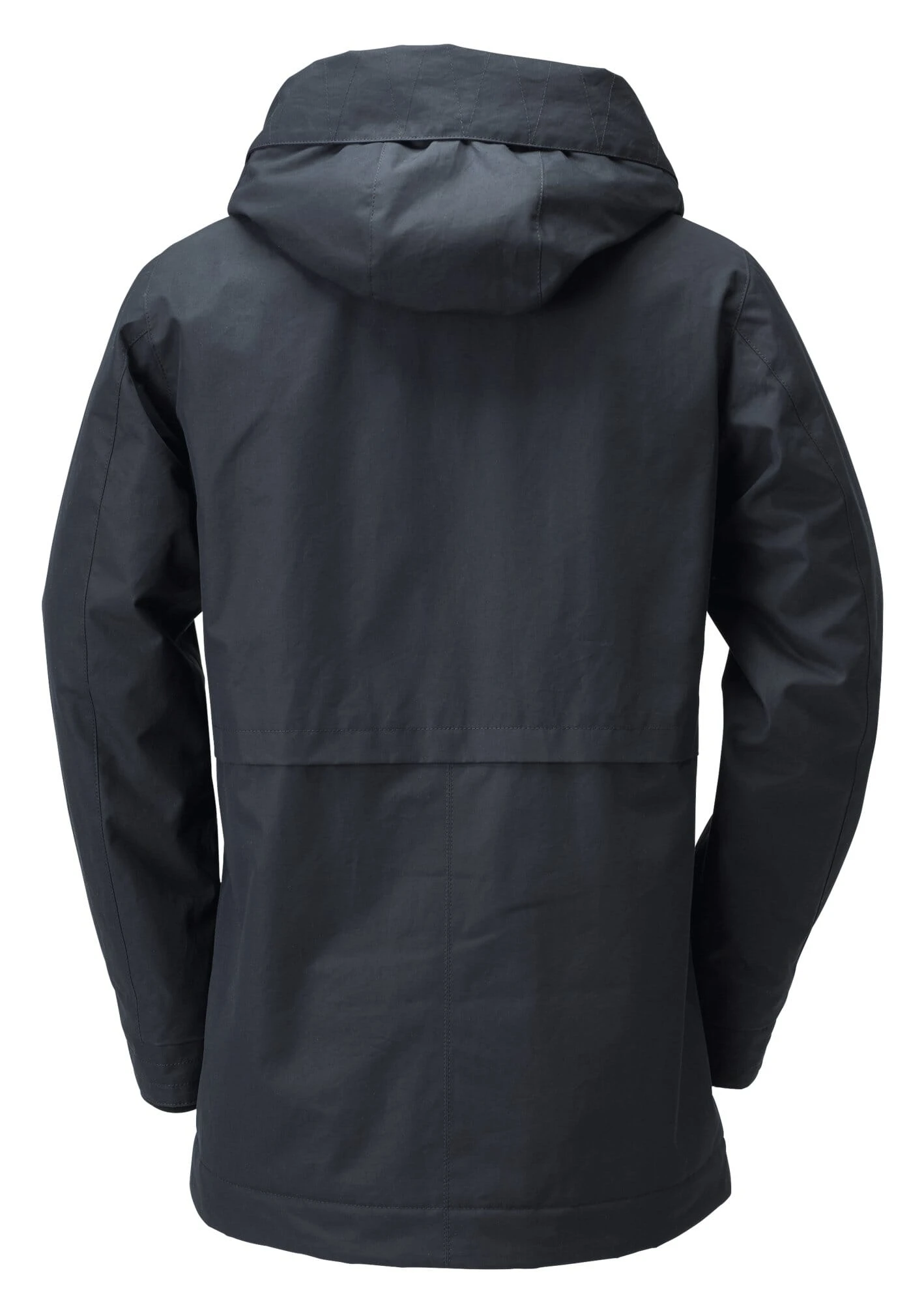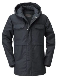 Deze parka jas heeft een verwarmende wollen fleece onder de EtaProof® buitenstof. De voering van de romp is van wol en de voering van de mouwen is van viscose om het aan- en uittrekken te vergemakkelijken. Gebreide manchetten houden de wind buiten. De voorkant van de parka sluit met een metalen tweewegrits en metalen drukknopen – de knoopsluiting is verstevigd met geribd band voor meer duurzaamheid. De capuchon heeft een dichtgeknoopte piek, en een verborgen trekkoord ter hoogte van de taille maakt aanpassing van de wijdte mogelijk. De gebruikte katoen is afkomstig van gecontroleerde biologische teelt.