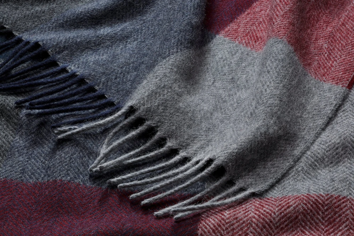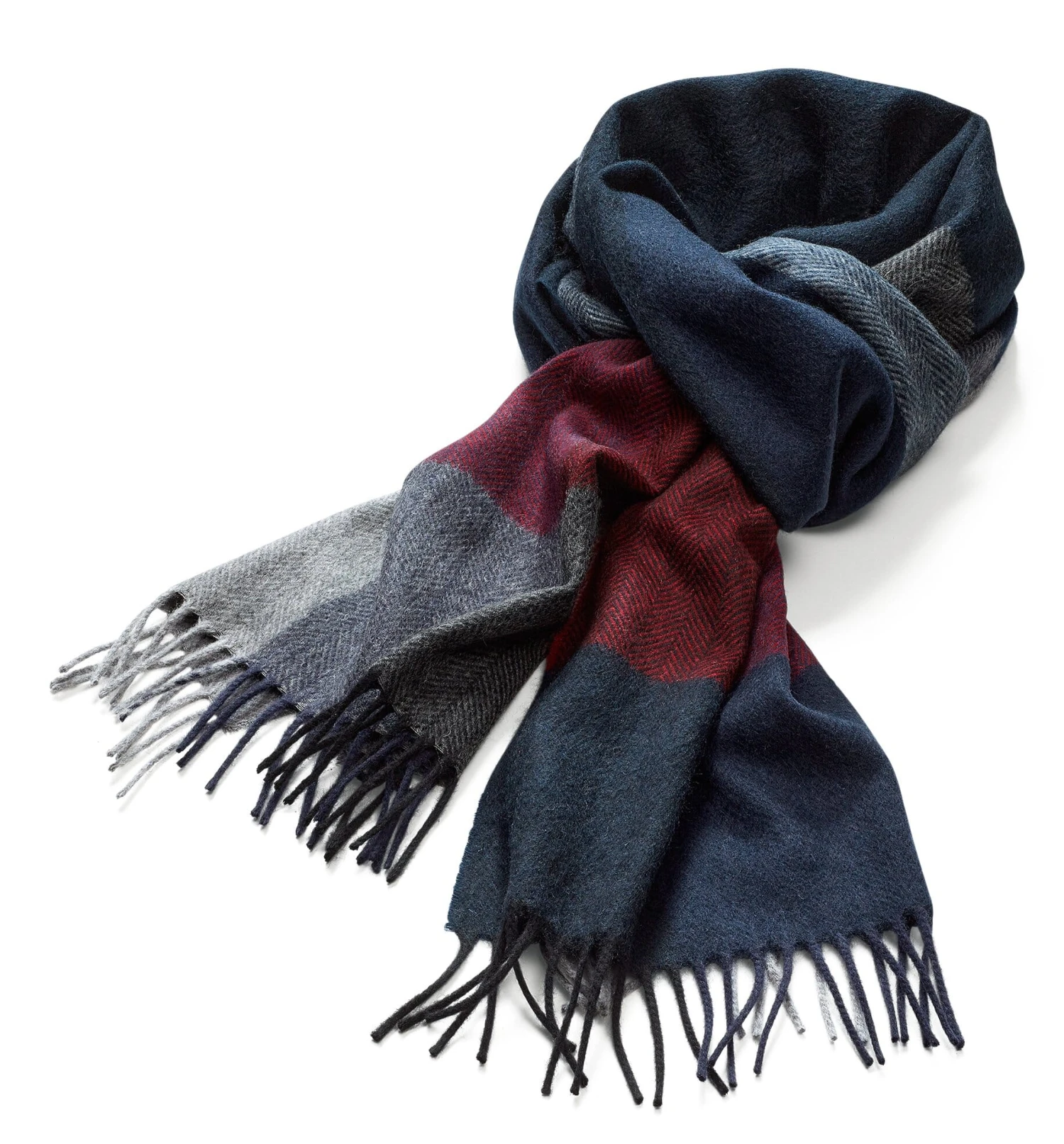 Heerlijk zachte sjaal van half kasjmier en half lamswol. De fijne stof is gemaakt als visgraat en verdeeld in verschillende gekleurde blokken. Franjes vormen de afwerking aan de uiteinden van de sjaal.