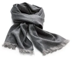 100% kasjmier. Gemaakt in Duitsland. Breedte 45 cm, lengte 210 cm (incl. franjes).