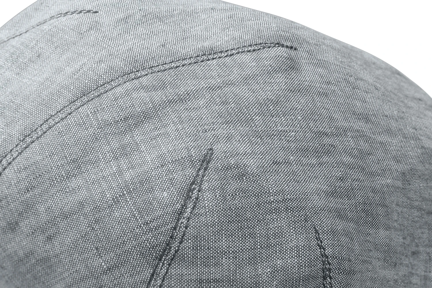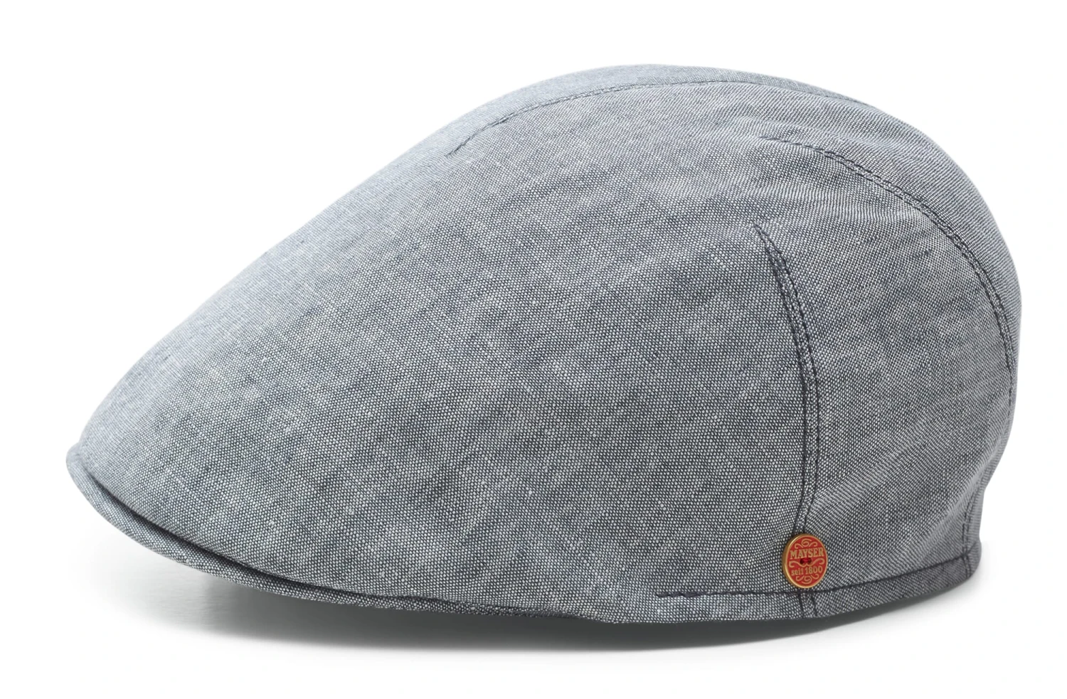 Petten van dit type – met aan de voorkant een naar de top getrokken top en coupenaden op het achterhoofd – maakten vroeger deel uit van de werkkleding. De vorm verspreidde zich snel buiten de werkwereld, met een verscheidenheid aan materialen, patronen en ook variaties op de klassieke vorm. Mayser maakt deze schuifmuts van een linnen stof die de voor het materiaal typische draadverdikkingen heeft en een mooi gemêleerd effect vertoont. De naden aan de achterkant van het hoofd zijn ongebruikelijk (en gunstig voor de pasvorm).