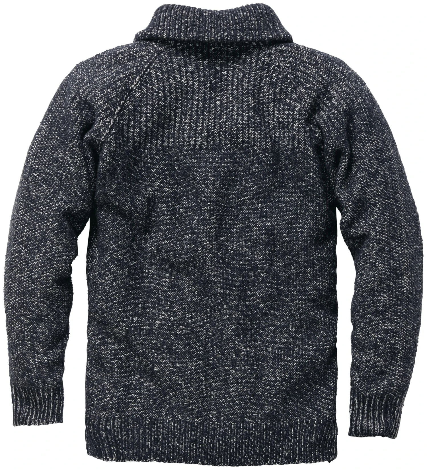 Drie materialen komen samen in deze klassieke troyer: verwarmende scheerwol, huidvriendelijke katoen en een beetje polyamide voor vormbehoud. De gebreide stof heeft een kenmerkende rijstkorrel look. De schouders zijn bewerkt met ingebreide jukken. Ribboorden maken de mouwen en de romp af.