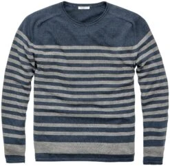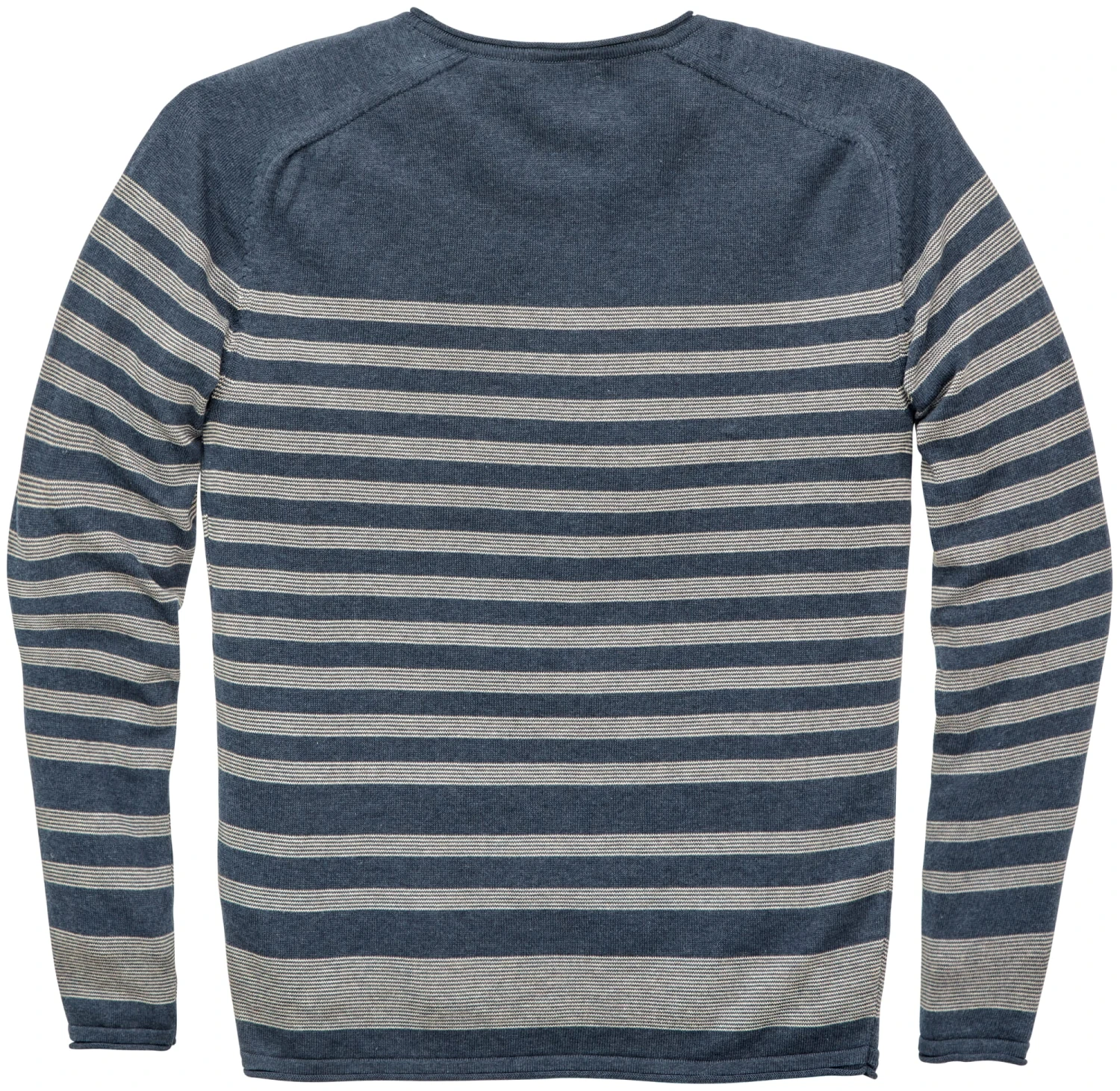 Het fijne breisel van deze casual, effen trui is gemaakt van gecertificeerd biologisch katoen. Het is voorzien van een opvallend en contrasterend streeppatroon, terwijl de schouderpartij effen is. De mouwen zijn uitgevoerd als raglanmouwen, fijne rolzomen vormen de afwerking bij de hals, mouwen en romp.