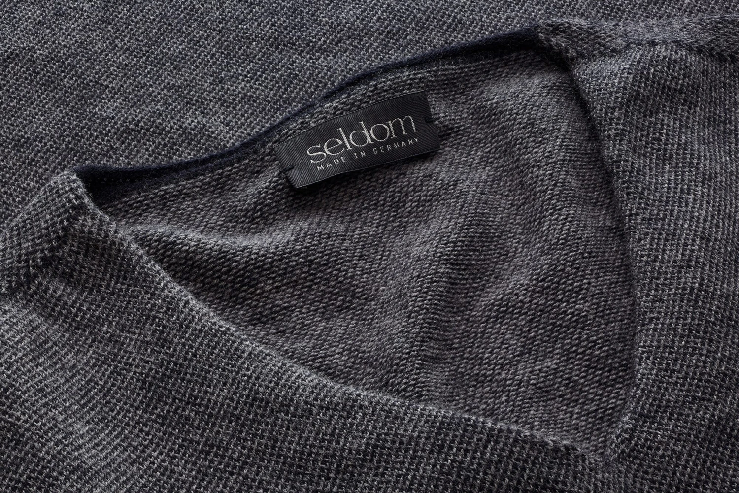 De Westerwald breispecialist Seldom combineert twee technieken in zijn goederen. Enerzijds zijn ze “naadloos”, d.w.z. volledig naadloos. Aan de andere kant worden ze gebreid met de plating-techniek. Hierbij wordt gewerkt met twee verschillend gekleurde garenstelsels, waarbij het ene garen rechts en het andere links domineert. De tweede kleur is echter nooit volledig gedekt, waardoor een gemêleerde toon ontstaat.