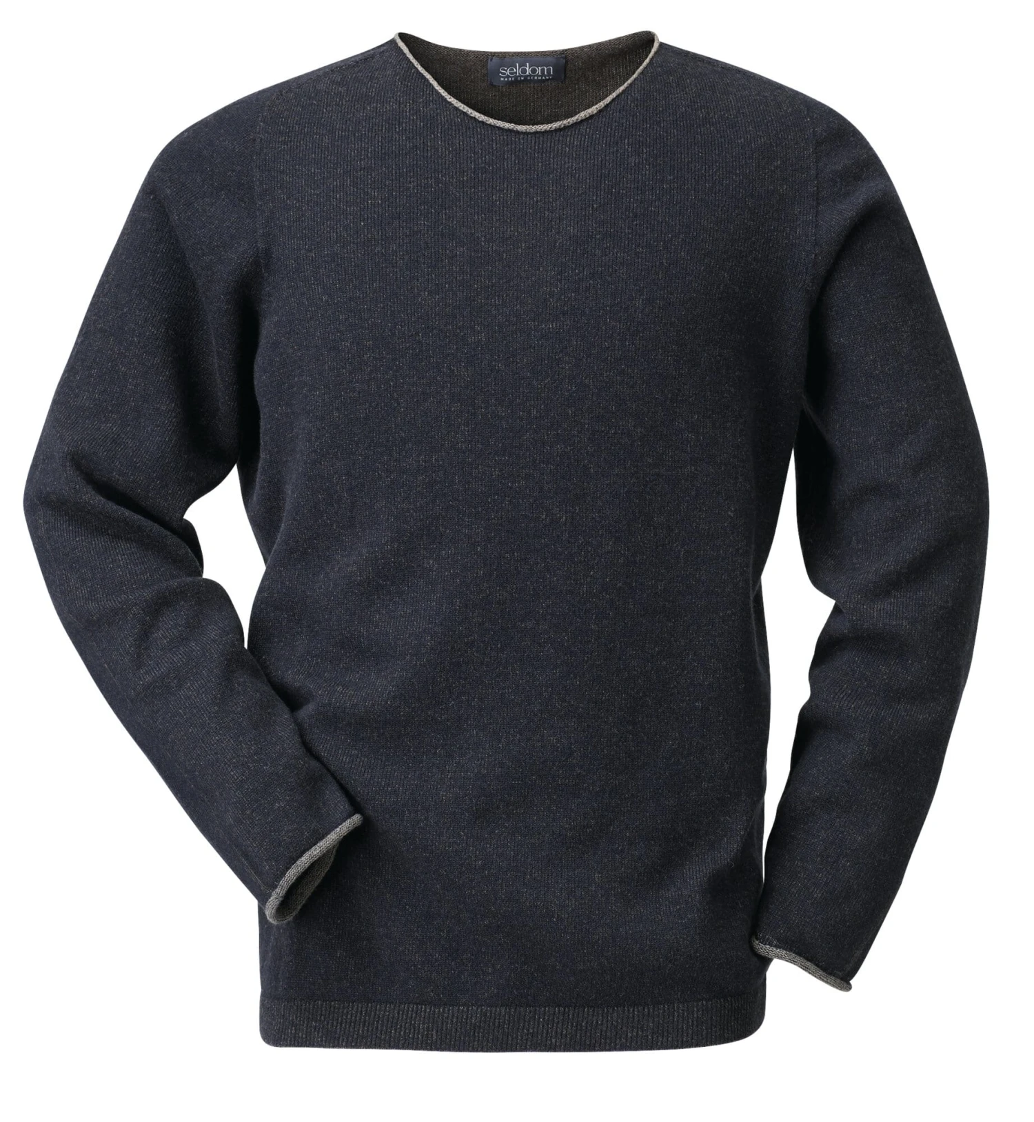 De Westerwald breispecialist Seldom combineert twee technieken in zijn goederen. Enerzijds zijn ze “naadloos”, d.w.z. volledig naadloos. Aan de andere kant worden ze gebreid met de plating-techniek. Hierbij wordt gewerkt met twee verschillend gekleurde garenstelsels, waarbij het ene garen rechts en het andere links domineert. De tweede kleur is echter nooit volledig gedekt, waardoor een gemêleerde toon ontstaat.