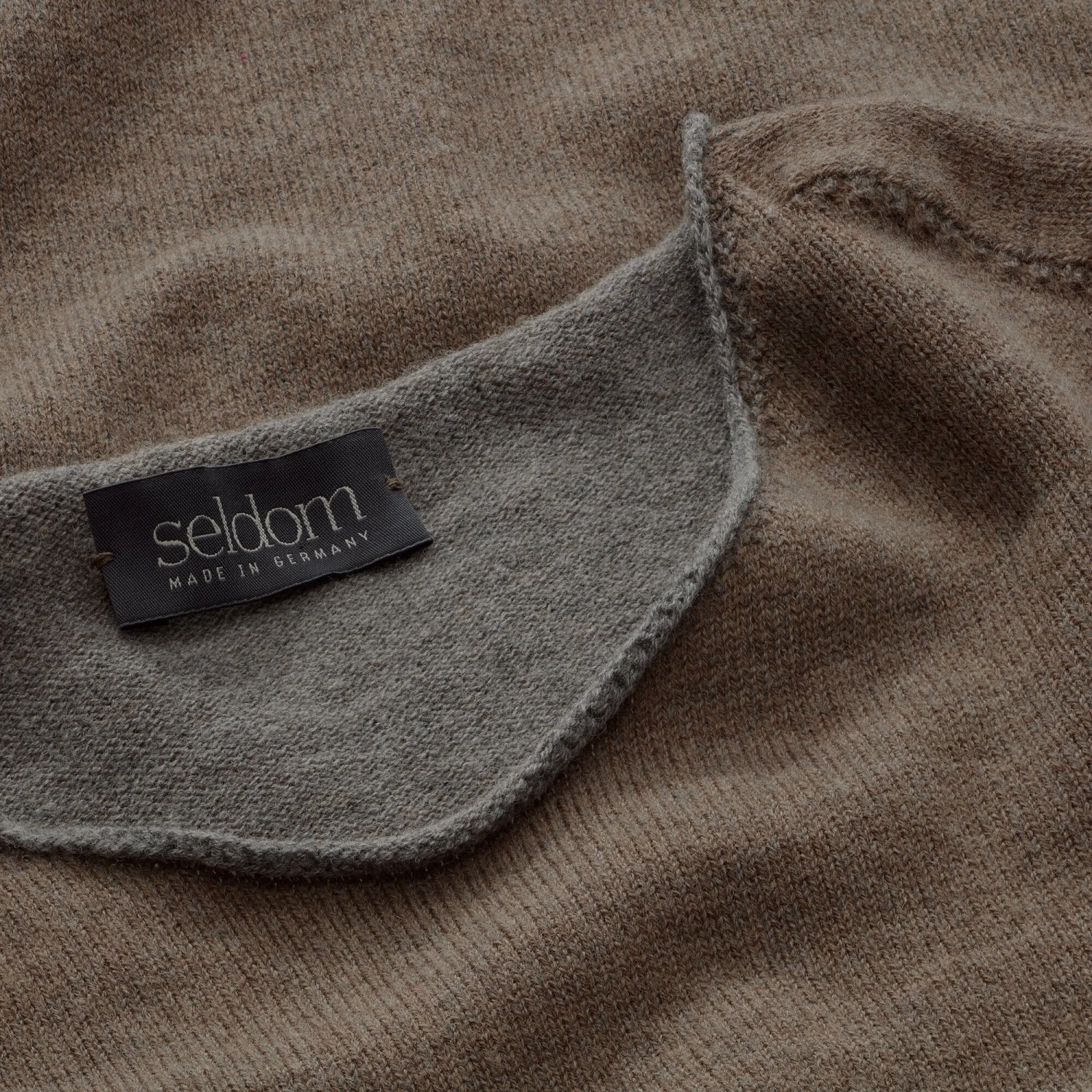 De Westerwald breispecialist Seldom combineert twee technieken in zijn goederen. Enerzijds zijn ze “naadloos”, d.w.z. volledig naadloos. Aan de andere kant worden ze gebreid met de plating-techniek. Hierbij wordt gewerkt met twee verschillend gekleurde garenstelsels, waarbij het ene garen rechts en het andere links domineert. De tweede kleur is echter nooit volledig gedekt, waardoor een gemêleerde toon ontstaat.