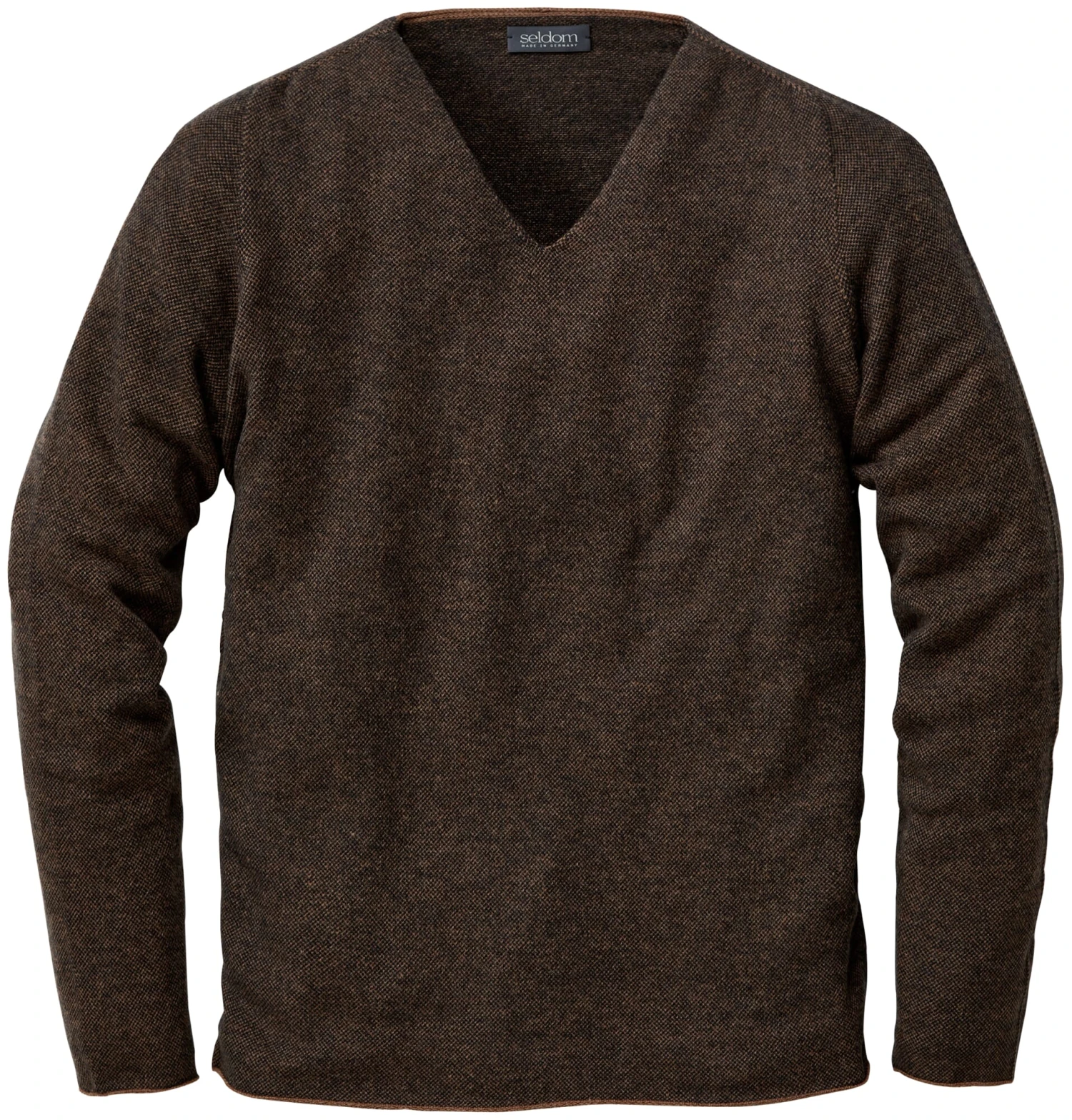 De Westerwald breispecialist Seldom combineert twee technieken in zijn goederen. Enerzijds zijn ze “naadloos”, d.w.z. volledig naadloos. Aan de andere kant worden ze gebreid met de plating-techniek. Hierbij wordt gewerkt met twee verschillend gekleurde garenstelsels, waarbij het ene garen rechts en het andere links domineert. De tweede kleur is echter nooit volledig gedekt, waardoor een gemêleerde toon ontstaat.