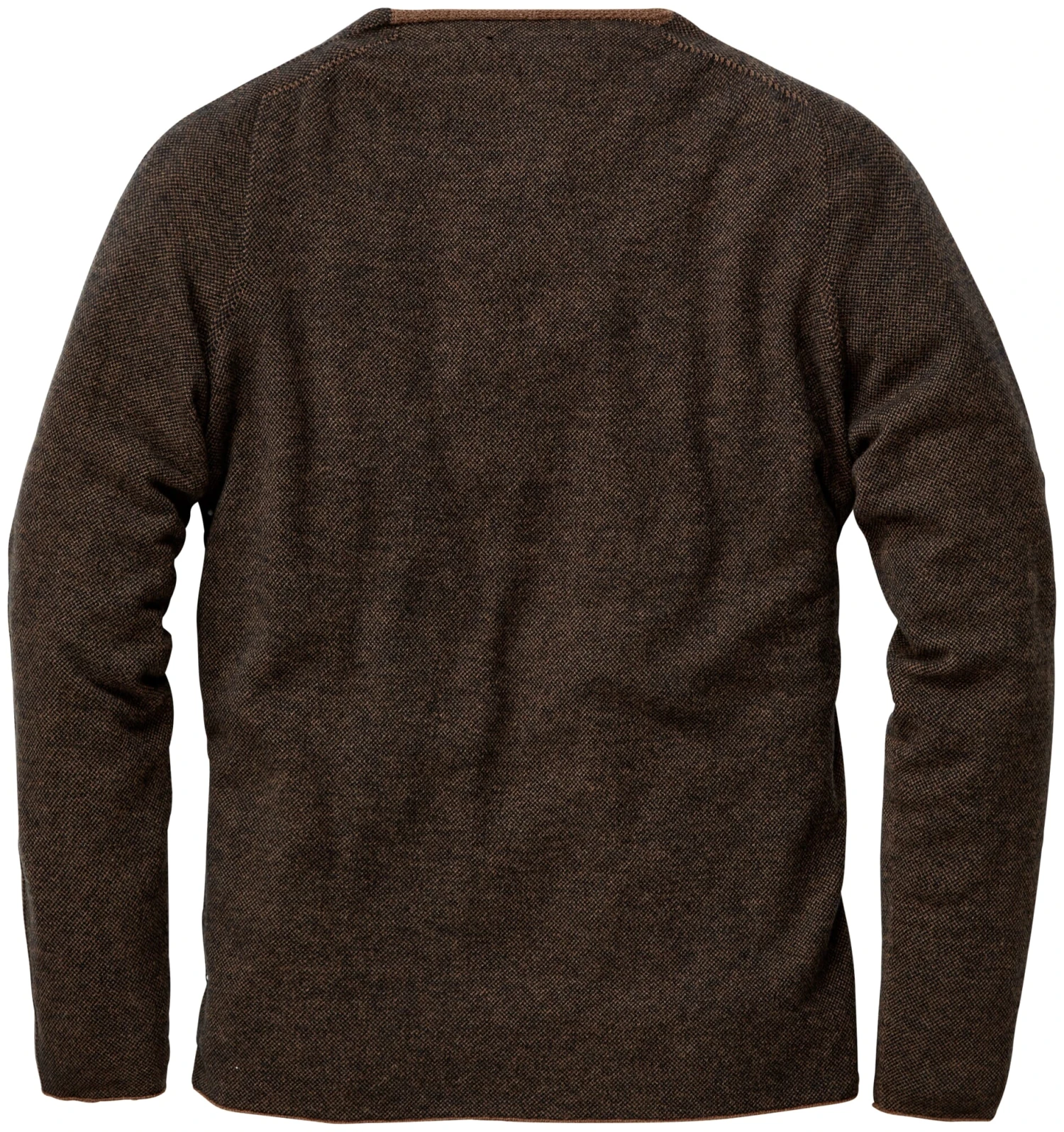 De gemêleerde garens van deze trui zijn gemaakt van zuivere gecertificeerde biologische merinowol. De gebreide stof, die een fijne wafelstructuur heeft, is dienovereenkomstig fijn, zacht en verwarmend. Smalle rolzomen vormen de afwerking bij de hals, mouwen en romp van de trui.
