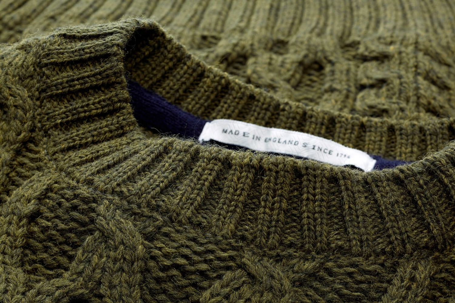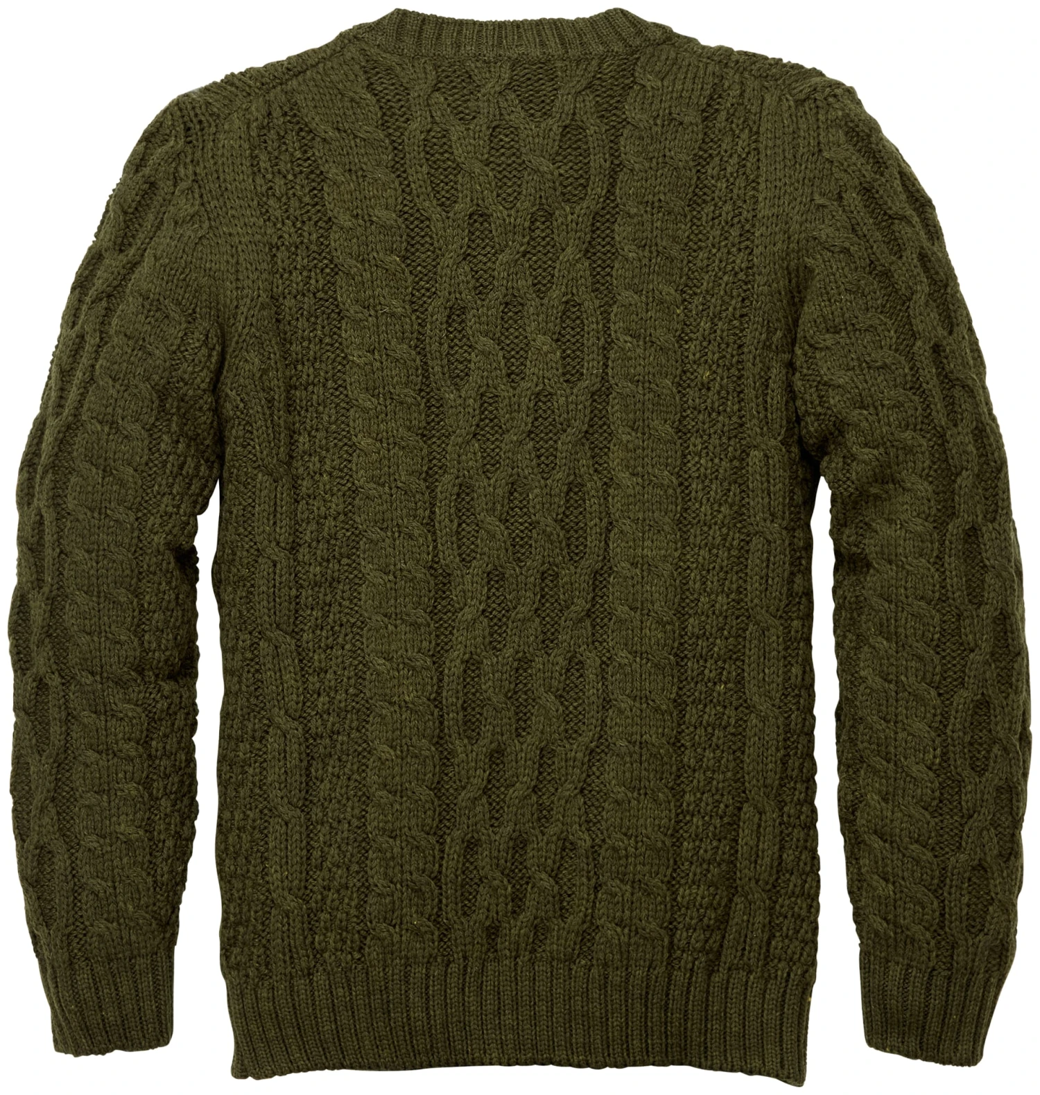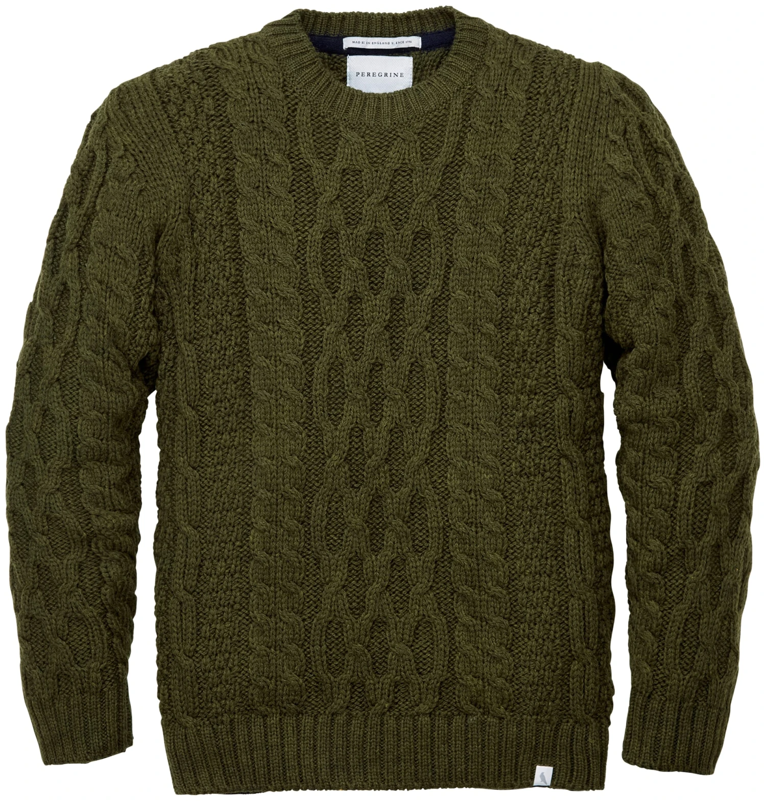 Peregrine maakt deze opvallende trui van merinowol van Peruaanse oorsprong die even verwarmend als huidvriendelijk is. Mouwen en romp tonen levendige aran patronen. Brede ribboorden maken de hals, mouwen en romp af.
