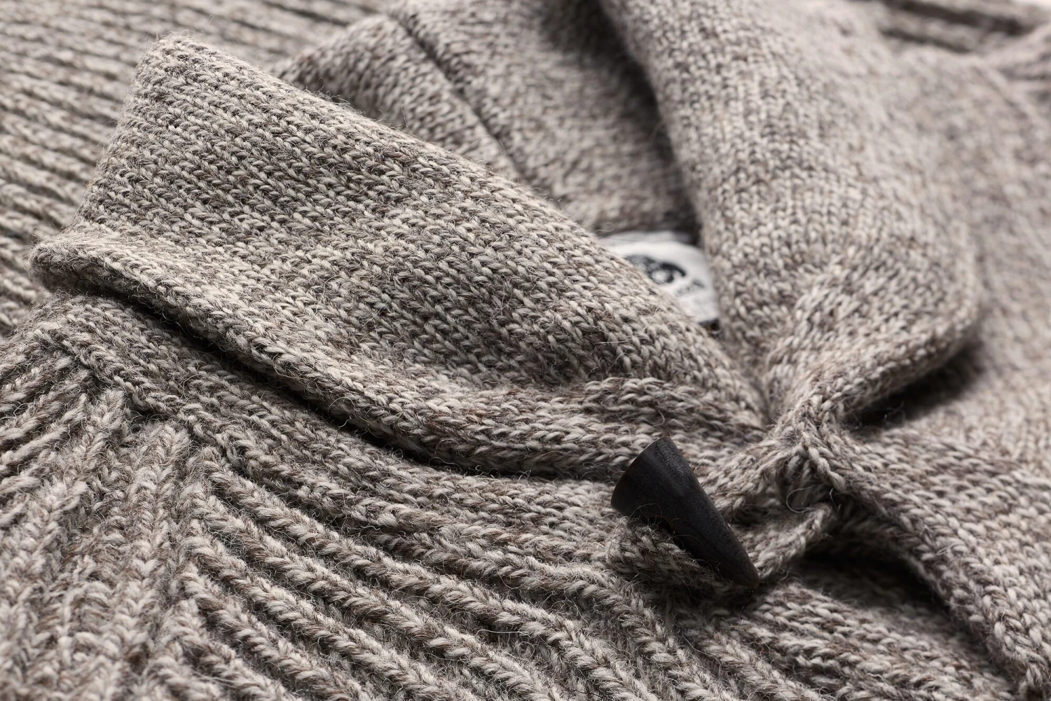 100% wol. Bevat niet uit textiel bestaande delen van dierlijke oorsprong: Echte hoornen knoop. Gemaakt in Groot-Brittannië. Ruglengte in maat L = 69 cm.