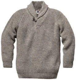Deze verwarmende wollen trui met sjaalkraag en raglanmouwen is lakgebreid. Het bijzondere van het lakbreisel is de luchtdoorlatendheid, waardoor zweten wordt voorkomen als het nog niet echt koud is. Dit maakt de trui de eerste keuze in het overgangsseizoen, maar in combinatie met een ondershirt houdt hij je ook warm als het echt koud is. De sjaalkraag heeft een knoop en lus, en de manchetten op de mouwen en de romp zijn geribd voor een goede pasvorm.