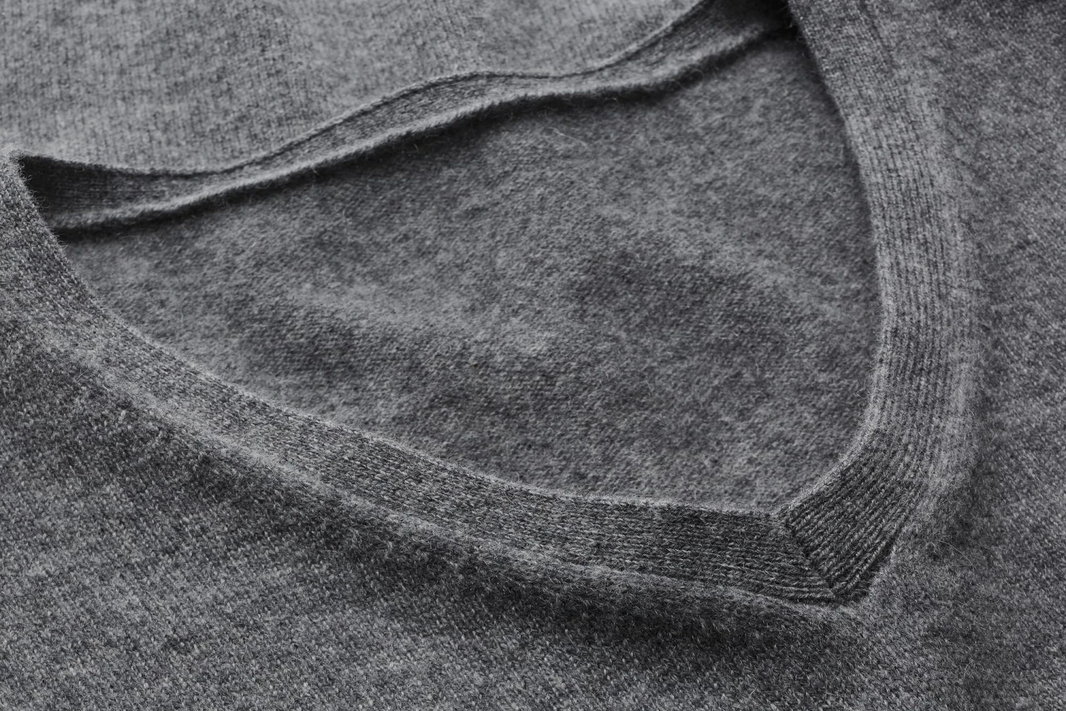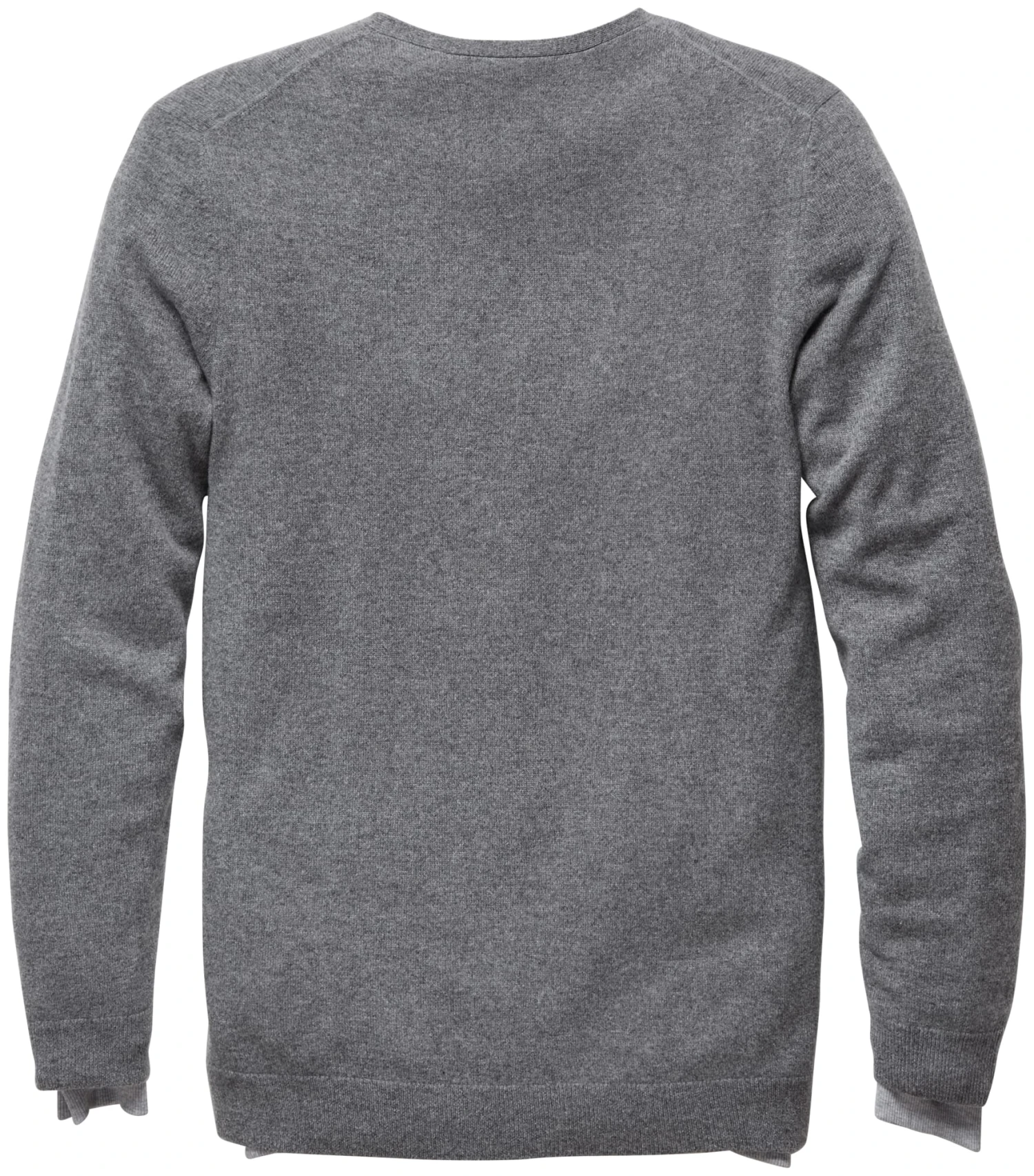 Het bijzondere aan deze trui is het materiaal. De helft is kasjmier, dat – een echte zeldzaamheid – afkomstig is van gecertificeerde biologische veeteelt, de rest is scheerwol. De soepel gebreide, rechtvallende trui is zacht, verwarmend en toch licht. De gebreide stof heeft een mooie gemêleerde look, fijne geribde boorden vormen de afwerking op de mouwen en de romp.