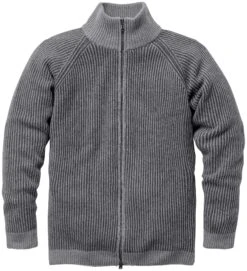 Dit vest met een opvallende gebreide look heeft een opstaande kraag en raglanmouwen. Het sluit met een tweewegs metalen rits.