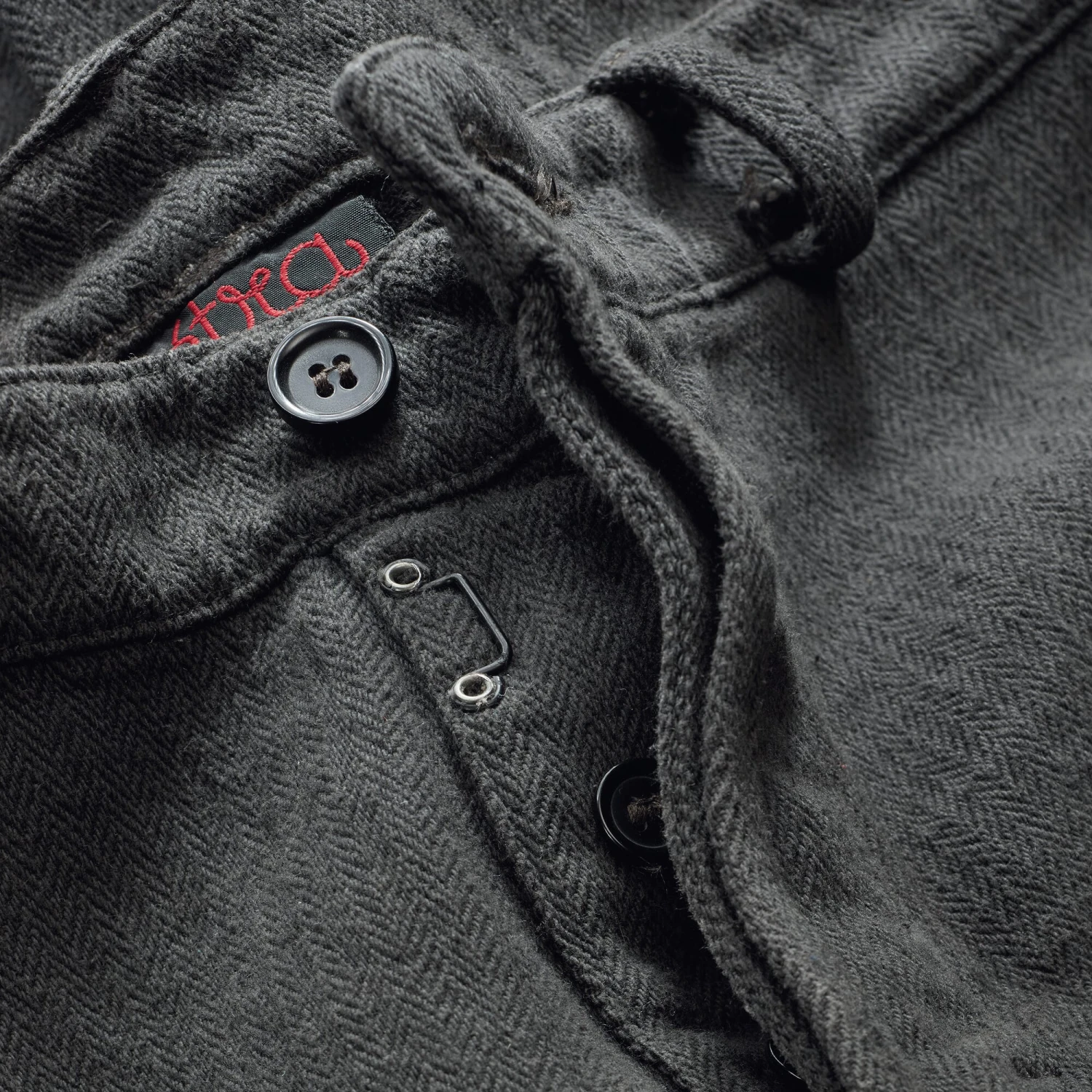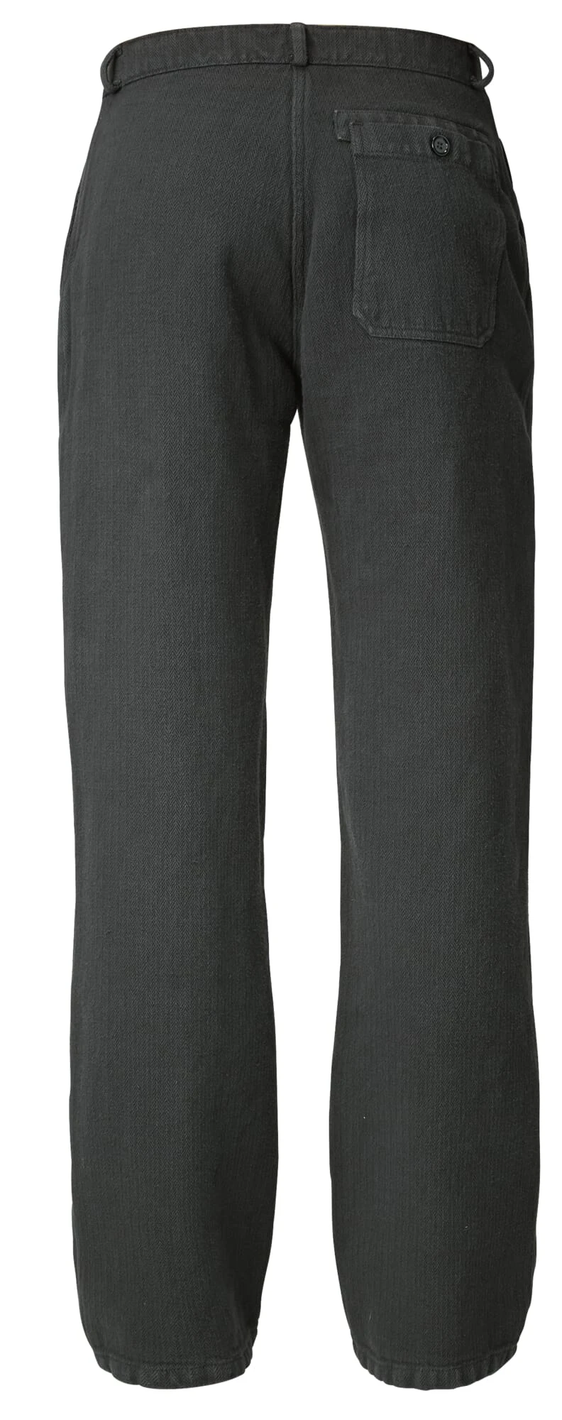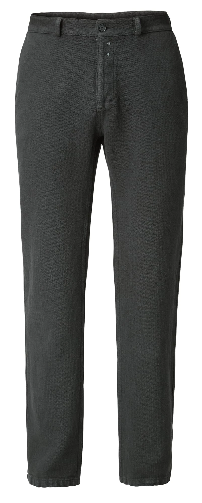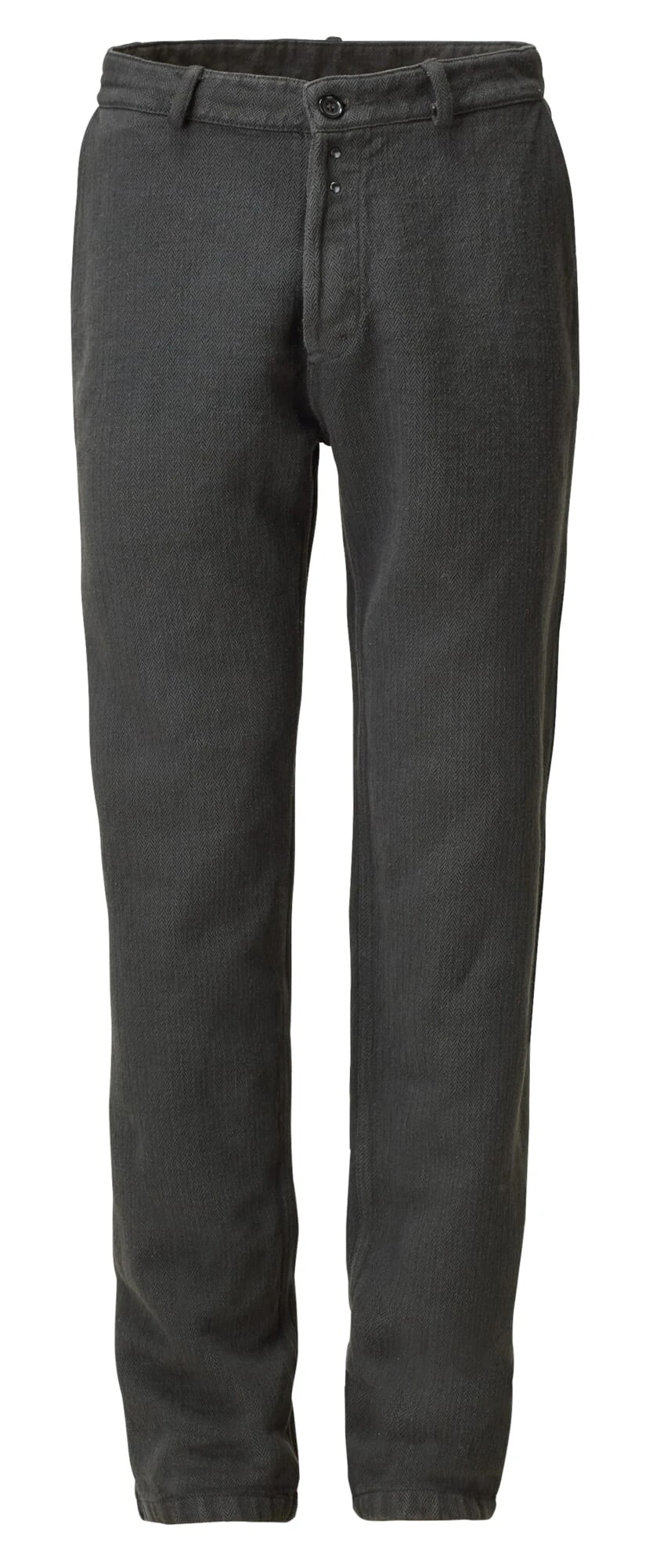 Ongevoerde katoenen linnen broek in effen visgraatstof. De broek met knopen is voorzien van een veiligheidshaak, twee zijzakken en een achterzak met knopen.