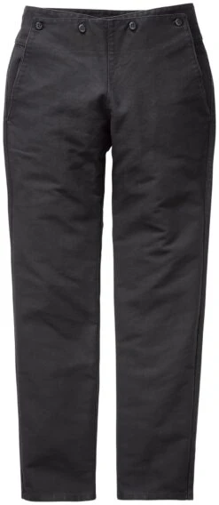 Gebaseerd op een historisch model uit Zweden maakt Pike Brothers deze broeken die duidelijk hun oorsprong vinden in de werkwereld. Ze hebben een losse pasvorm met een hoge tailleband. De broekbreedte kan worden aangepast via de “cinch back strap”, de verstelbare stang in de achterste tailleband. De broek heeft twee steekzakken en een achterzak met knoopsluiting en interne bretelknopen. Ze worden gesloten door middel van een knoopsluiting, waarover een voorgeknoopte slabber. De stof van het historische model is een robuuste “Elephant Skin” met een basisgewicht van 520 g/m²; Pike Brothers gebruikt een soortgelijke stof voor de nieuwe editie.