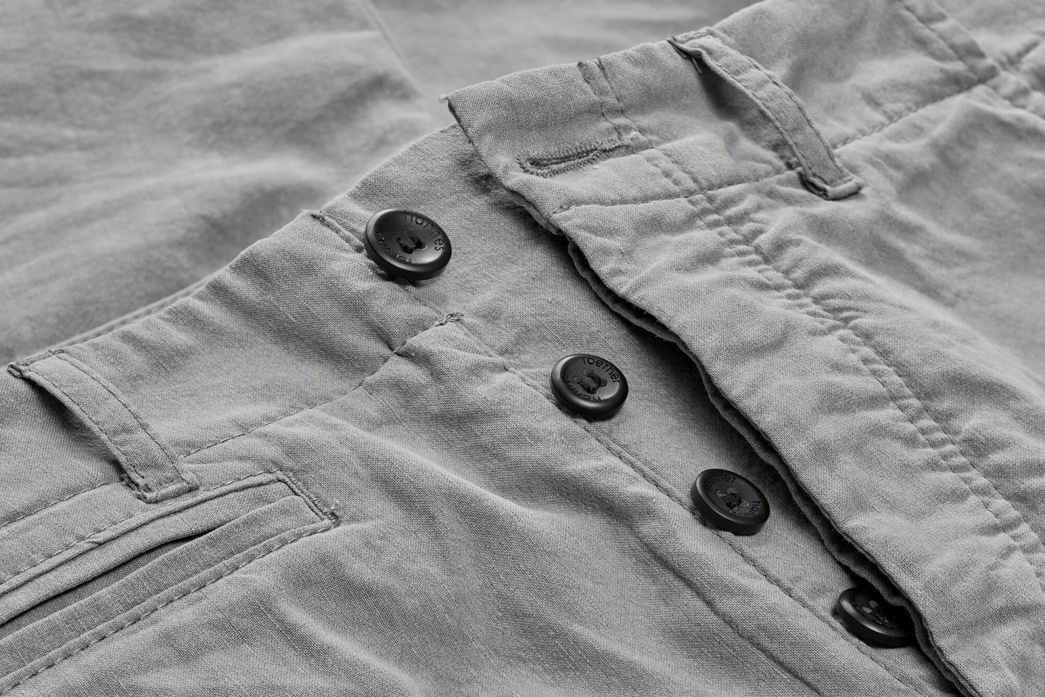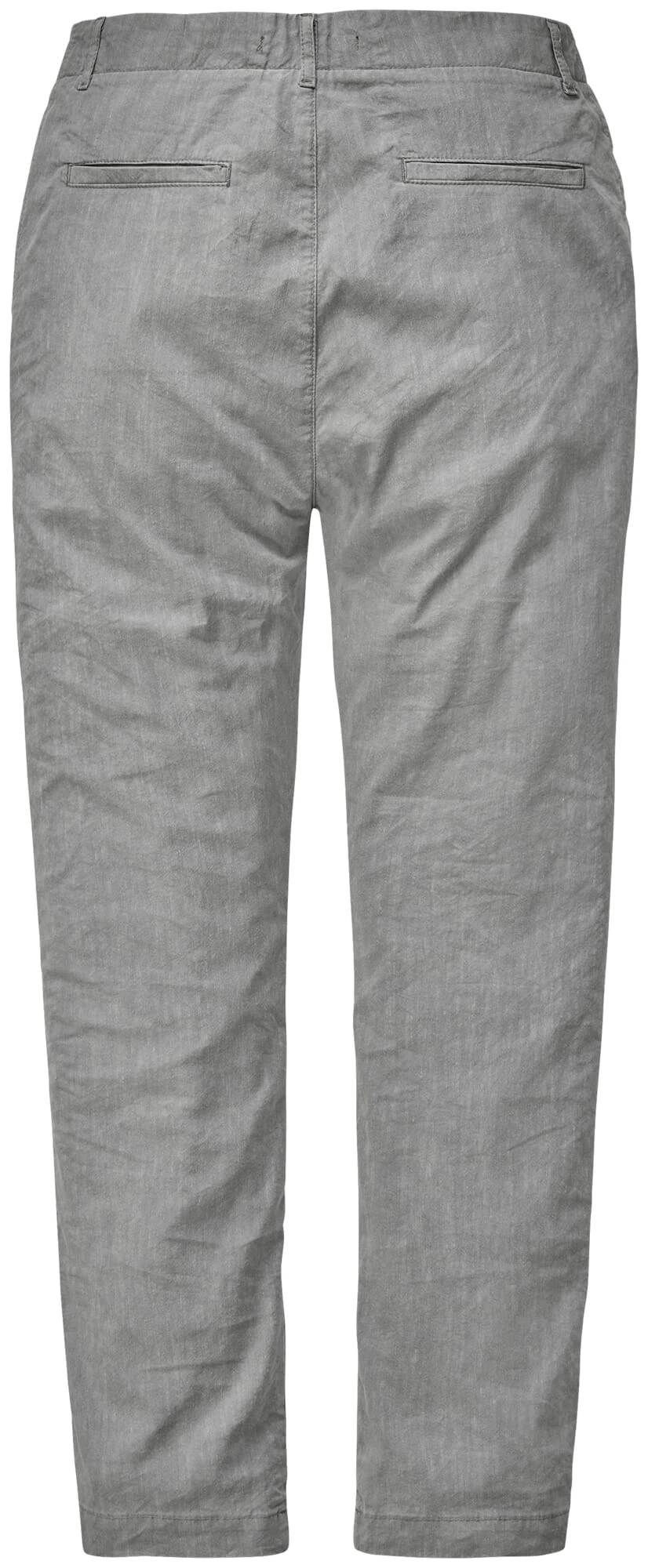 De stof van deze broek bestaat uit bijna gelijke delen huidvriendelijk katoen en linnen, dat verkoelend, duurzaam en vuilafstotend is. Aangezien de stof ook relatief licht is, is ze ideaal voor zomerbroeken zoals deze. Een elastaangehalte van drie procent verhoogt het draagcomfort nog verder. De broek wordt gesloten door middel van een knoopsluiting en een knoop. Hannes Roether rust ze uit met twee paspelzakken en een muntzakje vooraan en twee ingezette achterzakken.