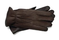 De achterhand van donkerbraun gekleurd gekruld lamsvel (herkomst Nieuw-Zeeland) houdt de rug van de hand en de vingers warm, de ongevoerde onderhand van zacht hertenleer (herkomst Oostenrijk) zorgt voor een goed contact met alles wat u met uw gehandschoende hand wilt vastpakken.