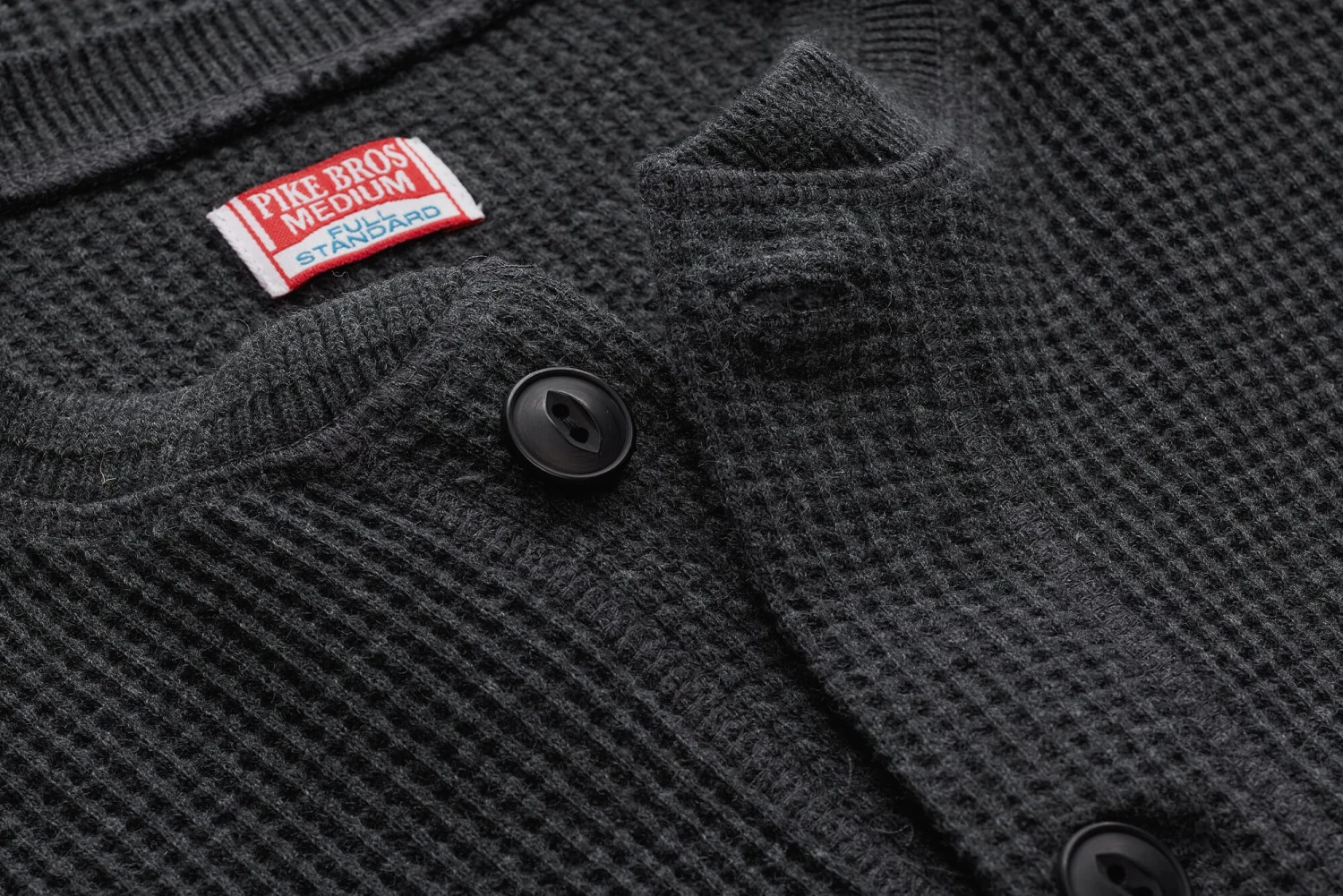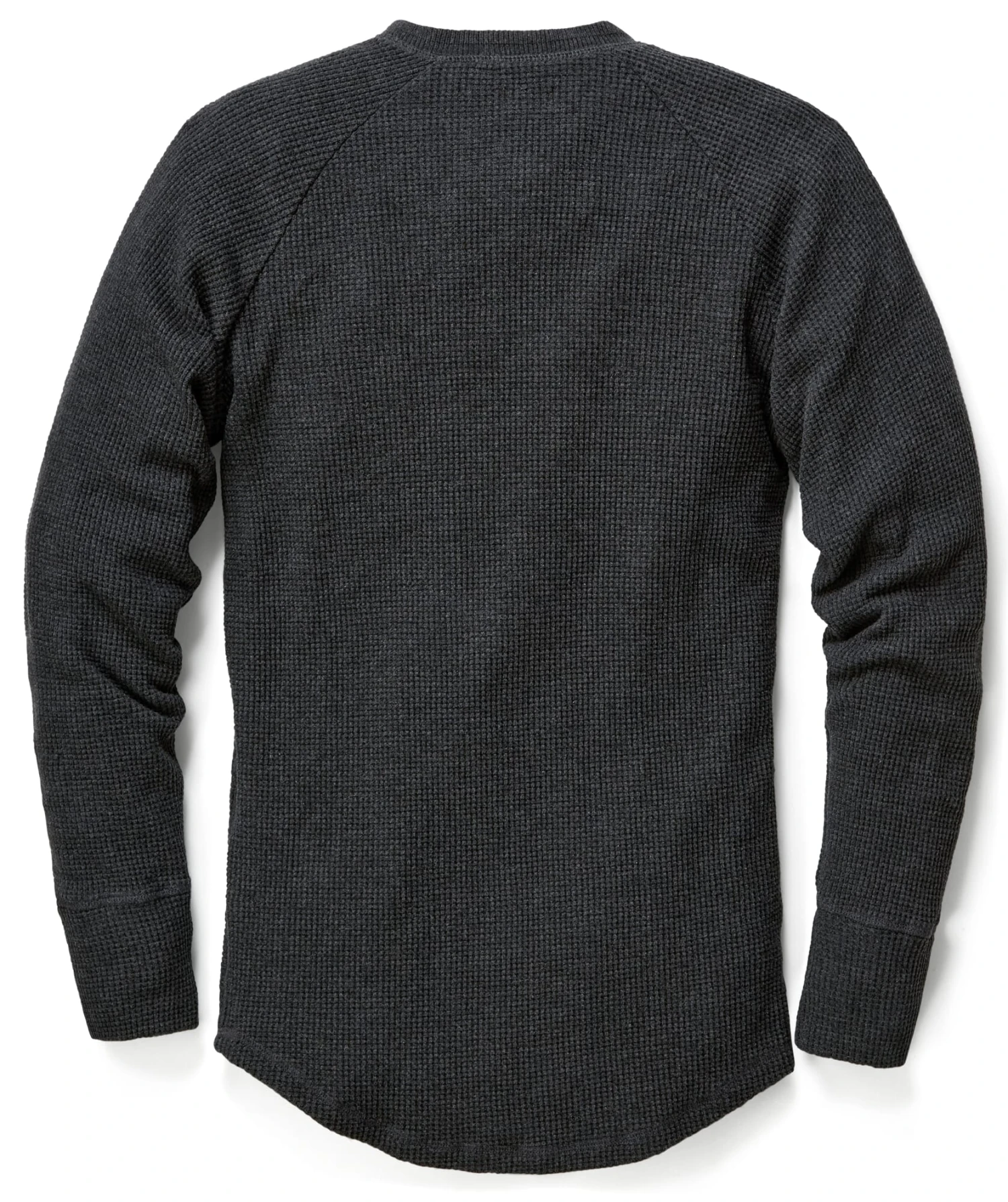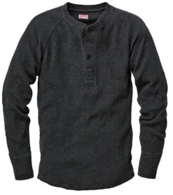 Een klassieker van het Amerikaanse herenondergoed uit de jaren 1930: het “wafelhemd” van zware katoenen wafelstof met een zacht gevoel, voorzien van raglanmouwen en knoopsluiting. Het materiaal is verdubbeld bij de manchetten. In overeenstemming met zijn oorspronkelijke functie is het overhemd vrij dicht op het lichaam gesneden. Het slaat echter ook een goed figuur als bovenkleding.