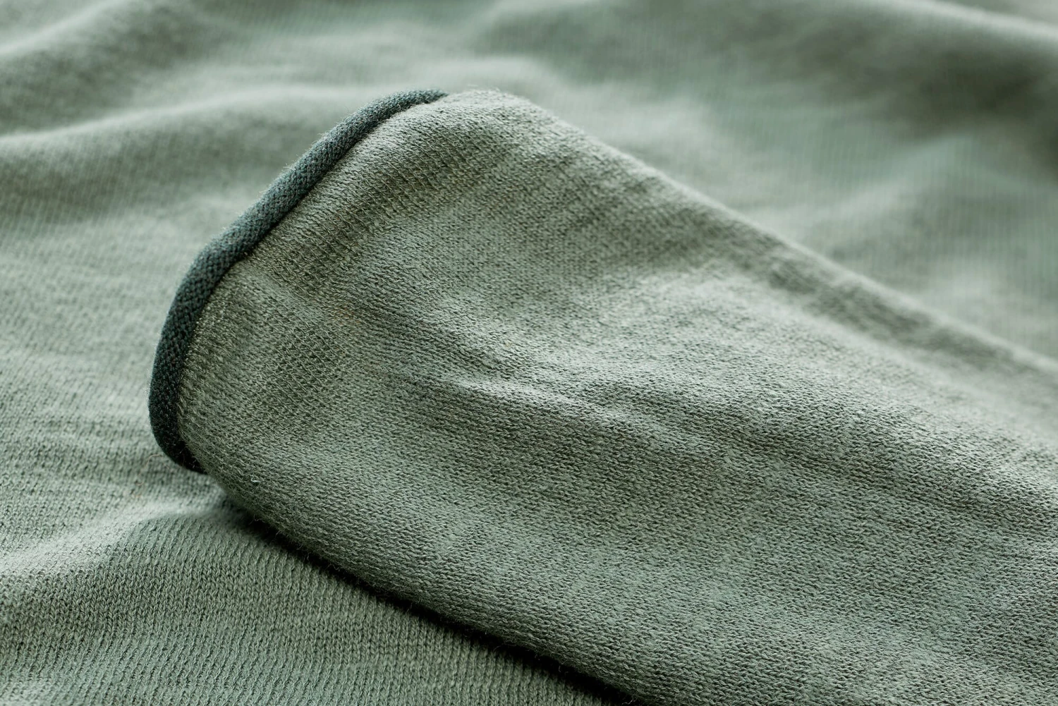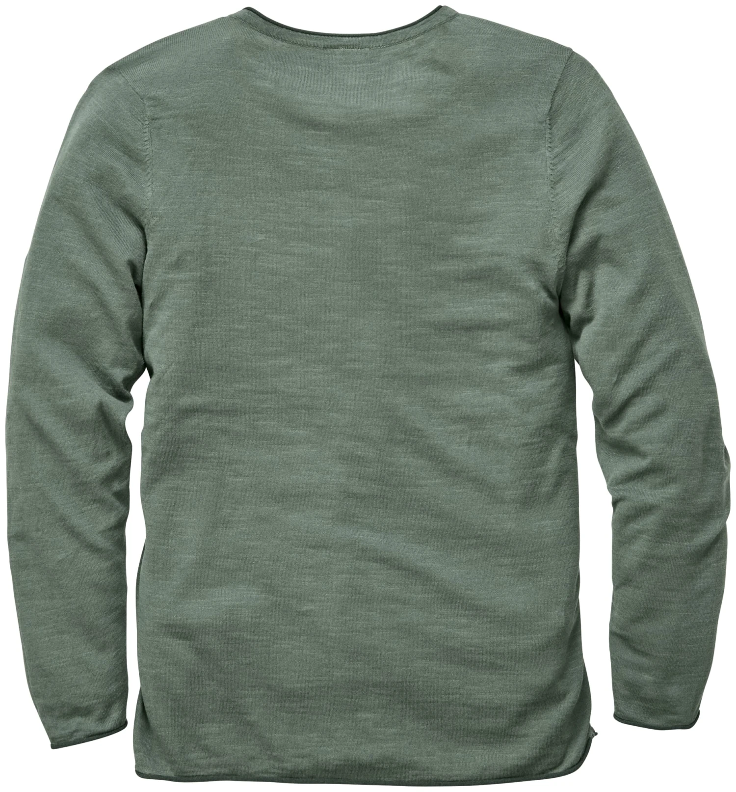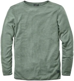 Een zeer lichte zomertrui, gemaakt van tweederde huidvriendelijk katoen en iets minder dan eenderde verkoelend linnen. De gebreide stof heeft een mooi gemêleerd effect. De hals, mouwen en romp zijn afgewerkt met fijne rolzomen.
