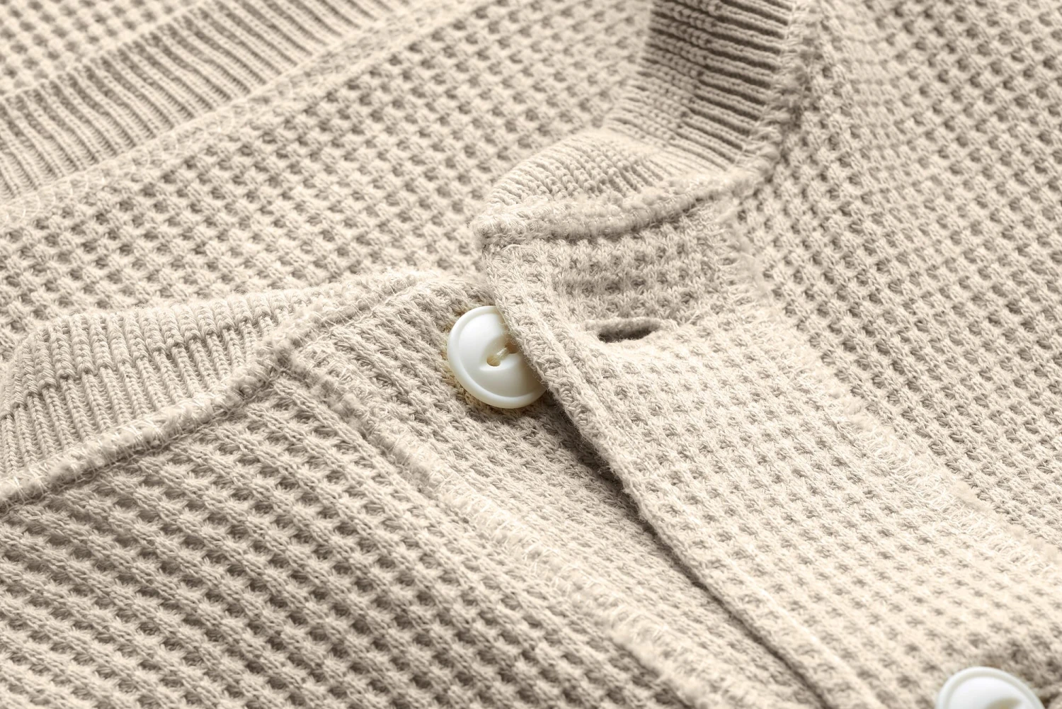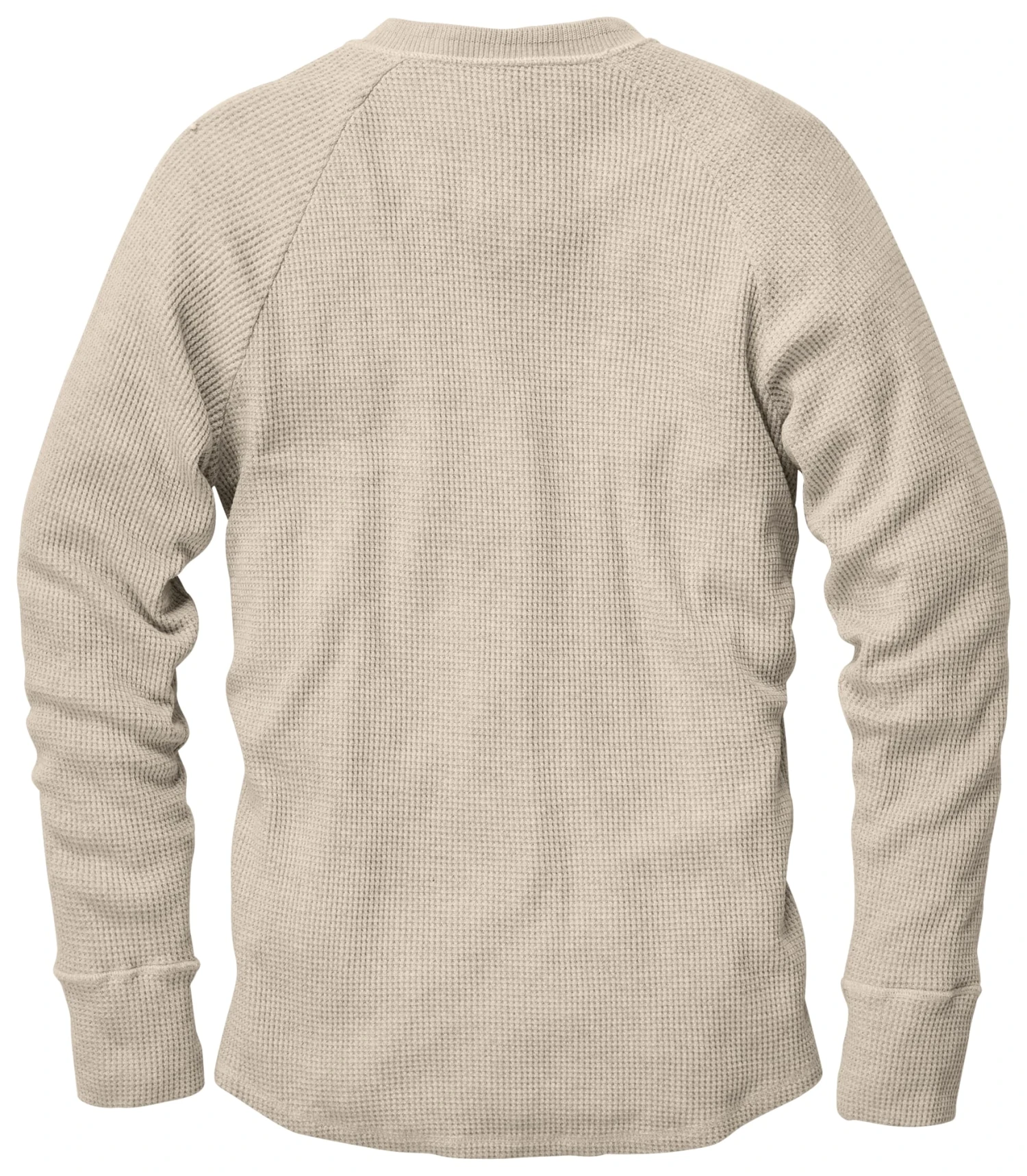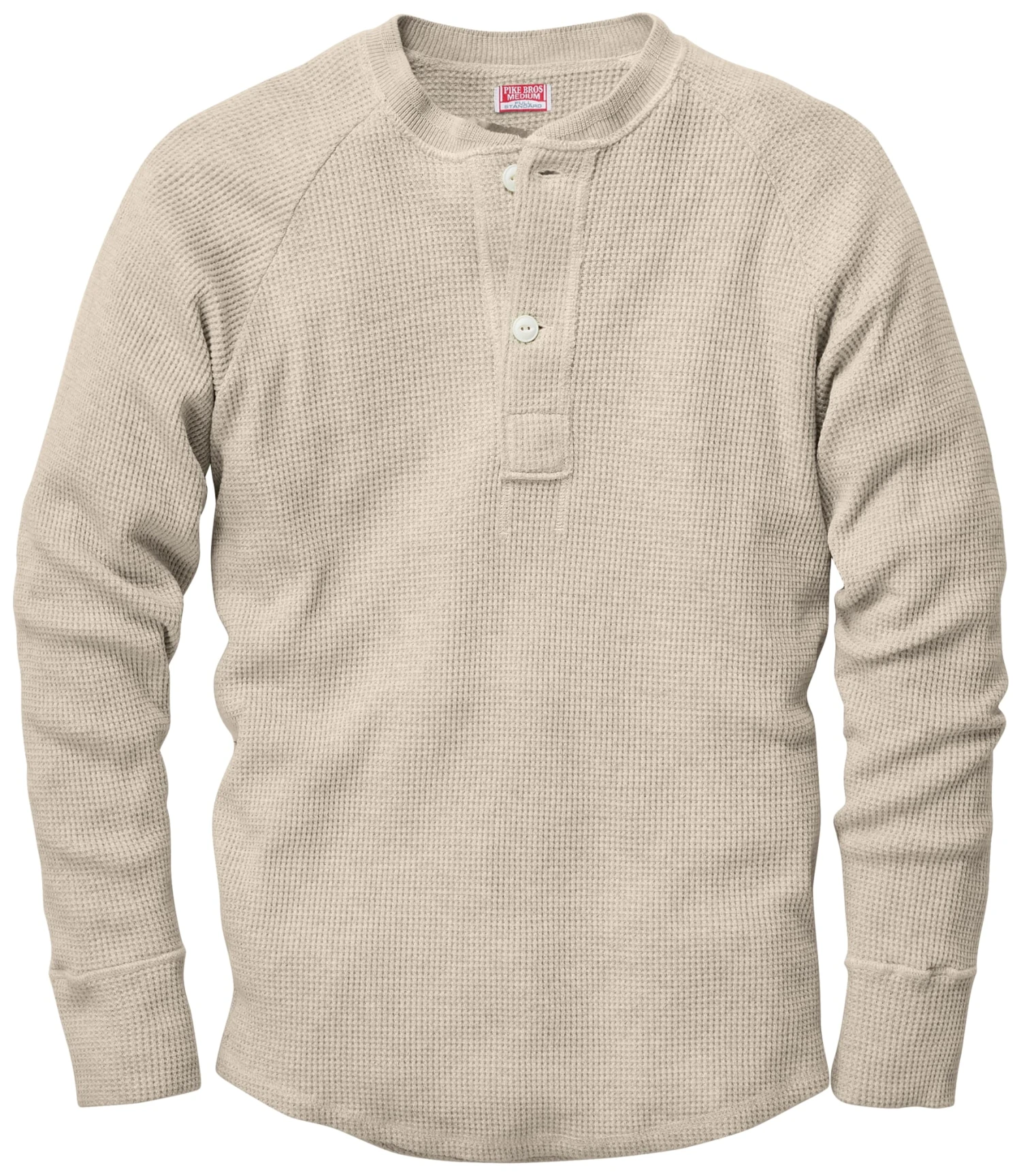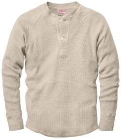 Een klassieker van het Amerikaanse herenondergoed uit de jaren 1930: het “wafelhemd” van zware katoenen wafelstof met een zacht gevoel, voorzien van raglanmouwen en knoopsluiting. Het materiaal is verdubbeld bij de manchetten. In overeenstemming met zijn oorspronkelijke functie is het overhemd vrij dicht op het lichaam gesneden. Het slaat echter ook een goed figuur als bovenkleding.