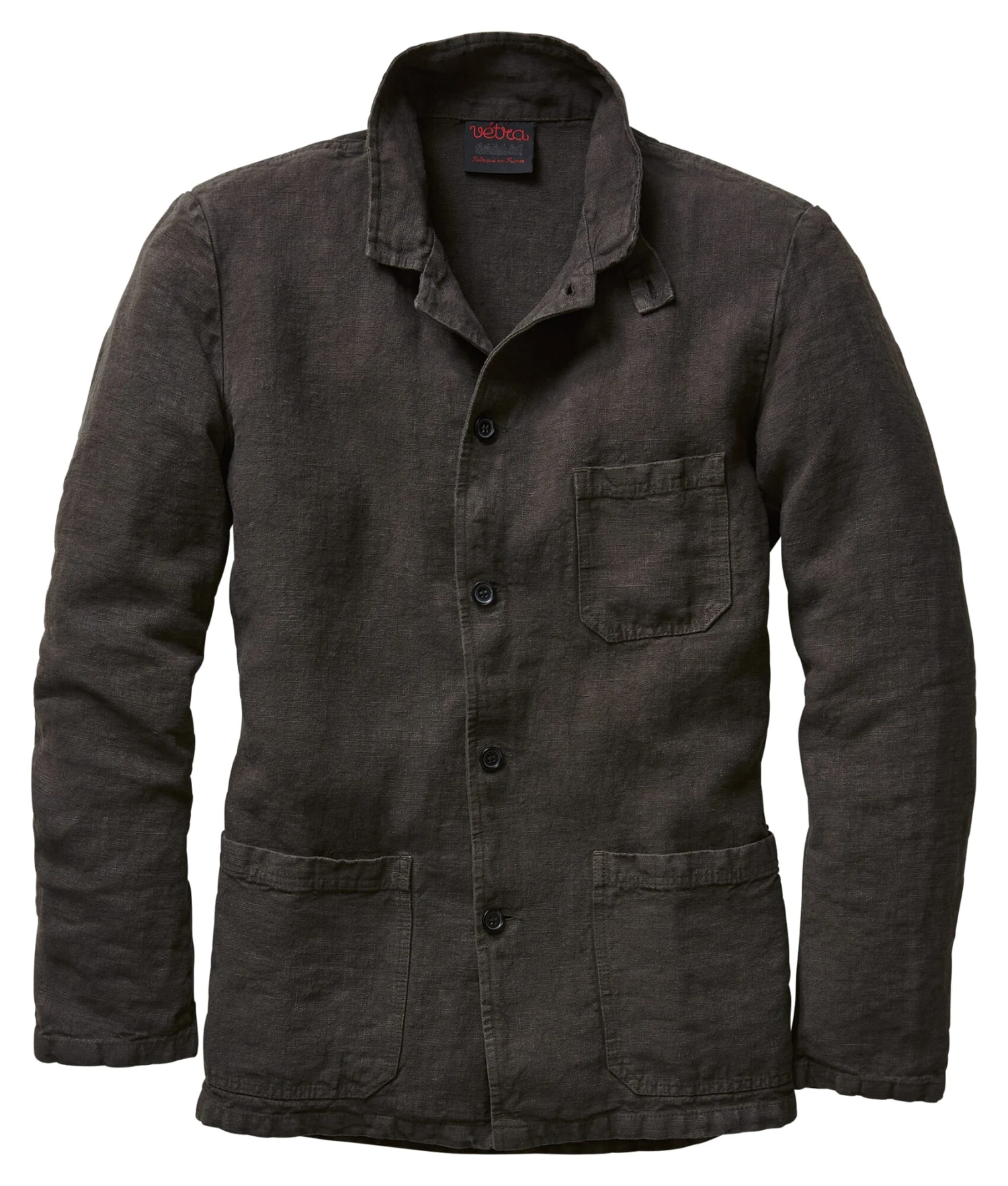 Dit ongevoerde jasje is gemaakt van een zachte linnen stof met een opvallende structuur. Het is voorzien van drie opgestikte zakken en een knoopbare stormsluiting op de kraag, de naden zijn gemaakt als kapnaden.