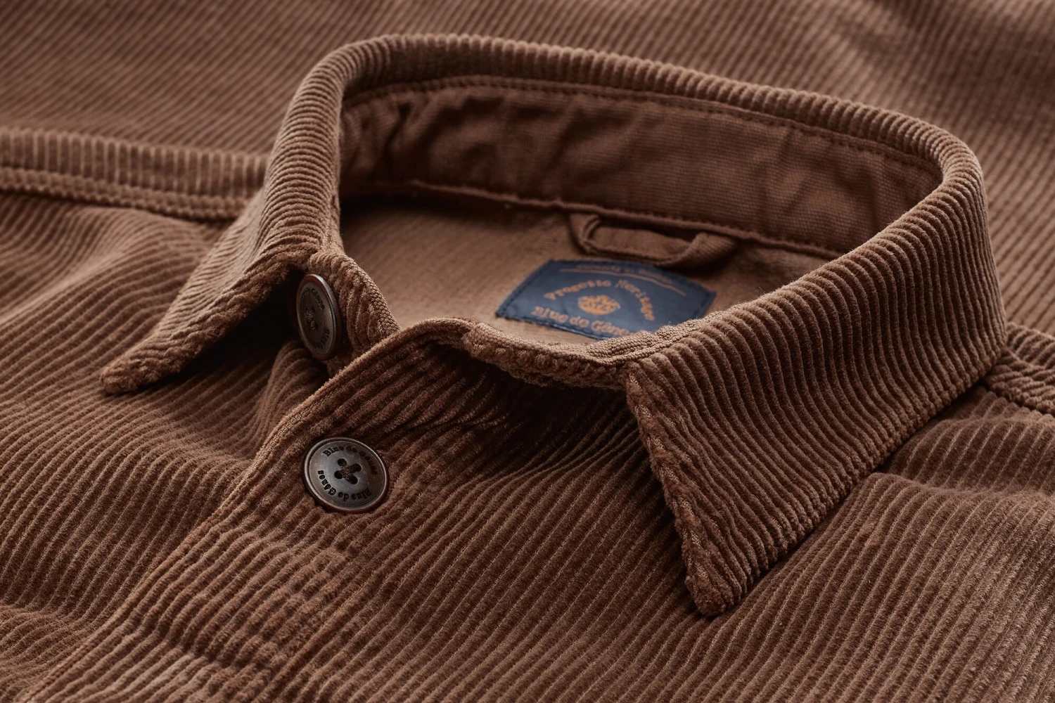 De kenmerkende stof van dit overhemdjasje is gemaakt van een gladde corduroy stof. Blue de Gênes maakt de jas met een Kent-kraag en twee opgestikte borstzakken met kleppen met knoopsluiting waarin kleine voorwerpen voor dagelijks gebruik kunnen worden opgeborgen.