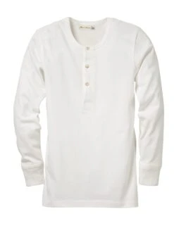Deze overhemden met knoopsluiting (zogenaamde henleys) worden in de Zwabische Jura gemaakt van biologisch katoen. Ze worden gemaakt op oude rondbreimachines, wat betekent dat ze geen zijnaden hebben. Voor elke maat moet een aparte machine worden ingesteld. Een smalle ribgebreide boord vormt de afwerking bij de hals, de mouwen sluiten met brede platgebreide boorden.