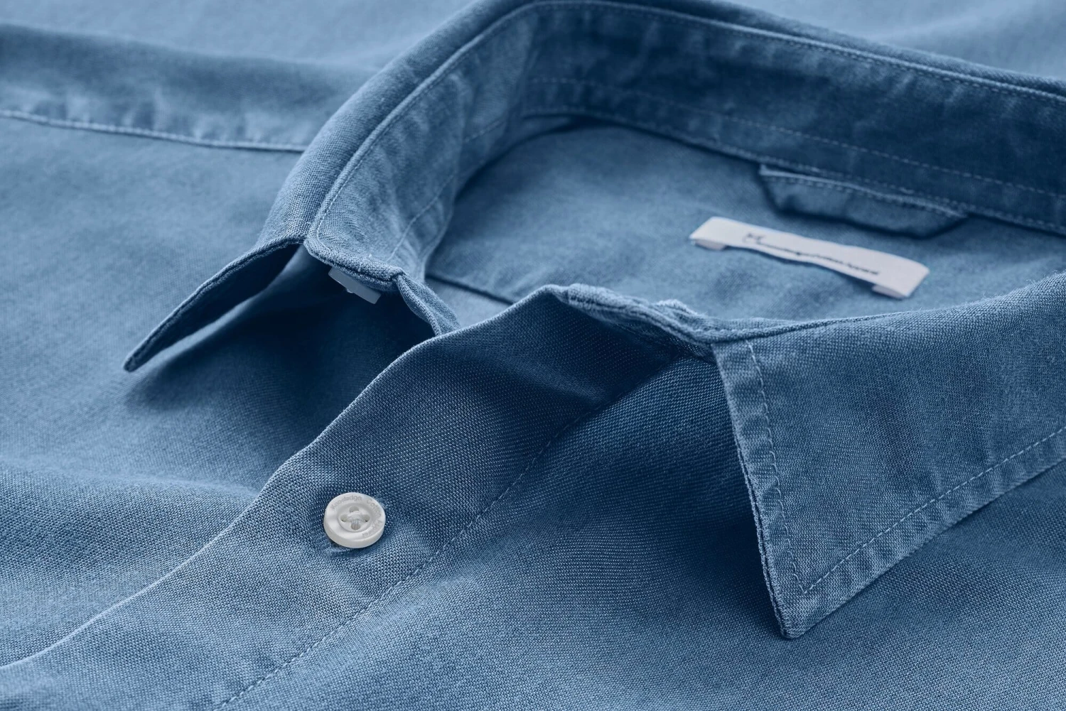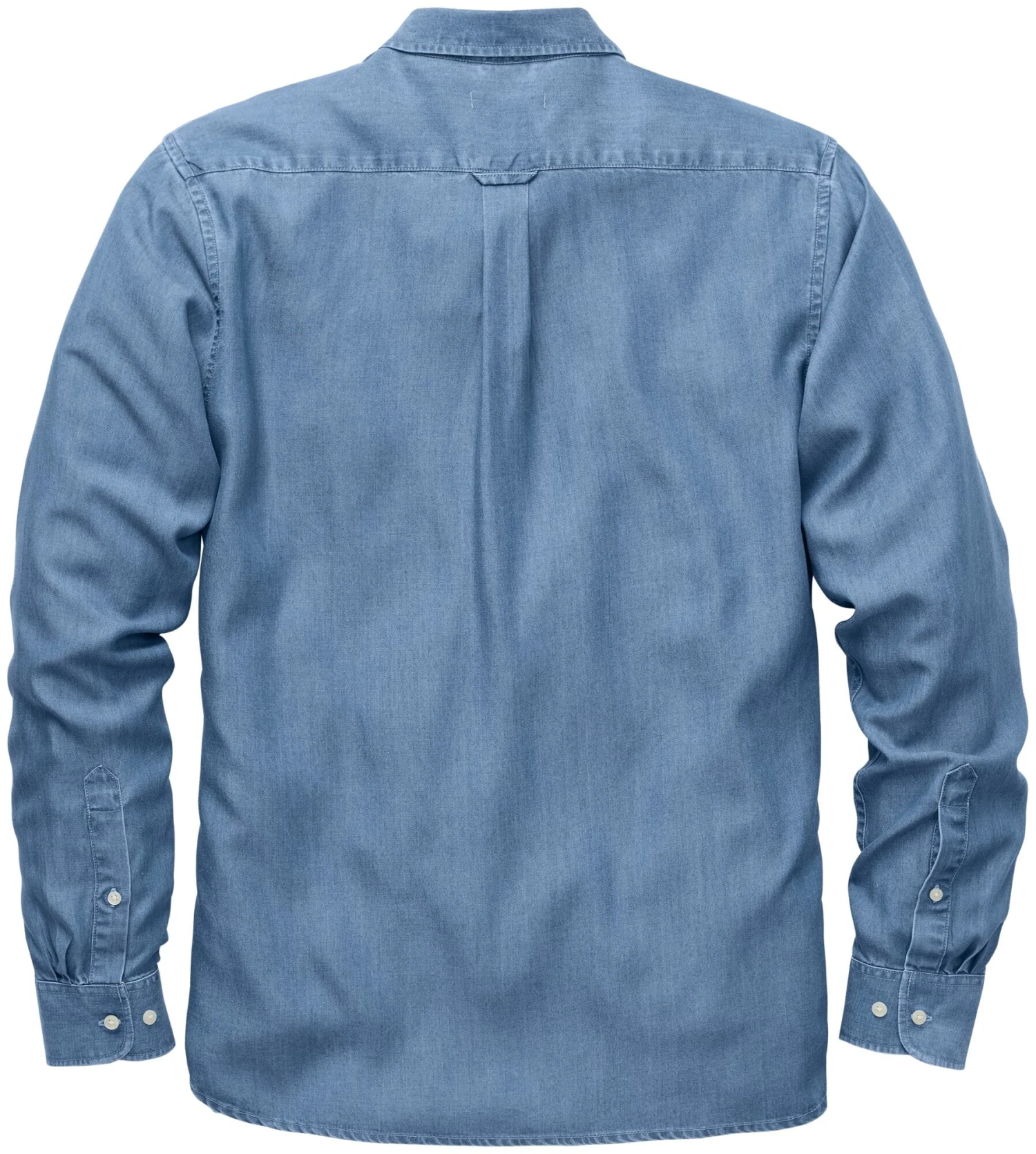 Op het eerste gezicht lijkt dit shirt met zijn kenmerkende used look op een denim shirt. Knowledge Cotton Apparel maakt het echter van TENCEL™, een vezel met een zacht gevoel verkregen uit het hout van duurzaam beheerde bossen, die zich kenmerkt door een hoog draagcomfort. Het overhemd is voorzien van een Kent-kraag en een opgestikte borstzak.