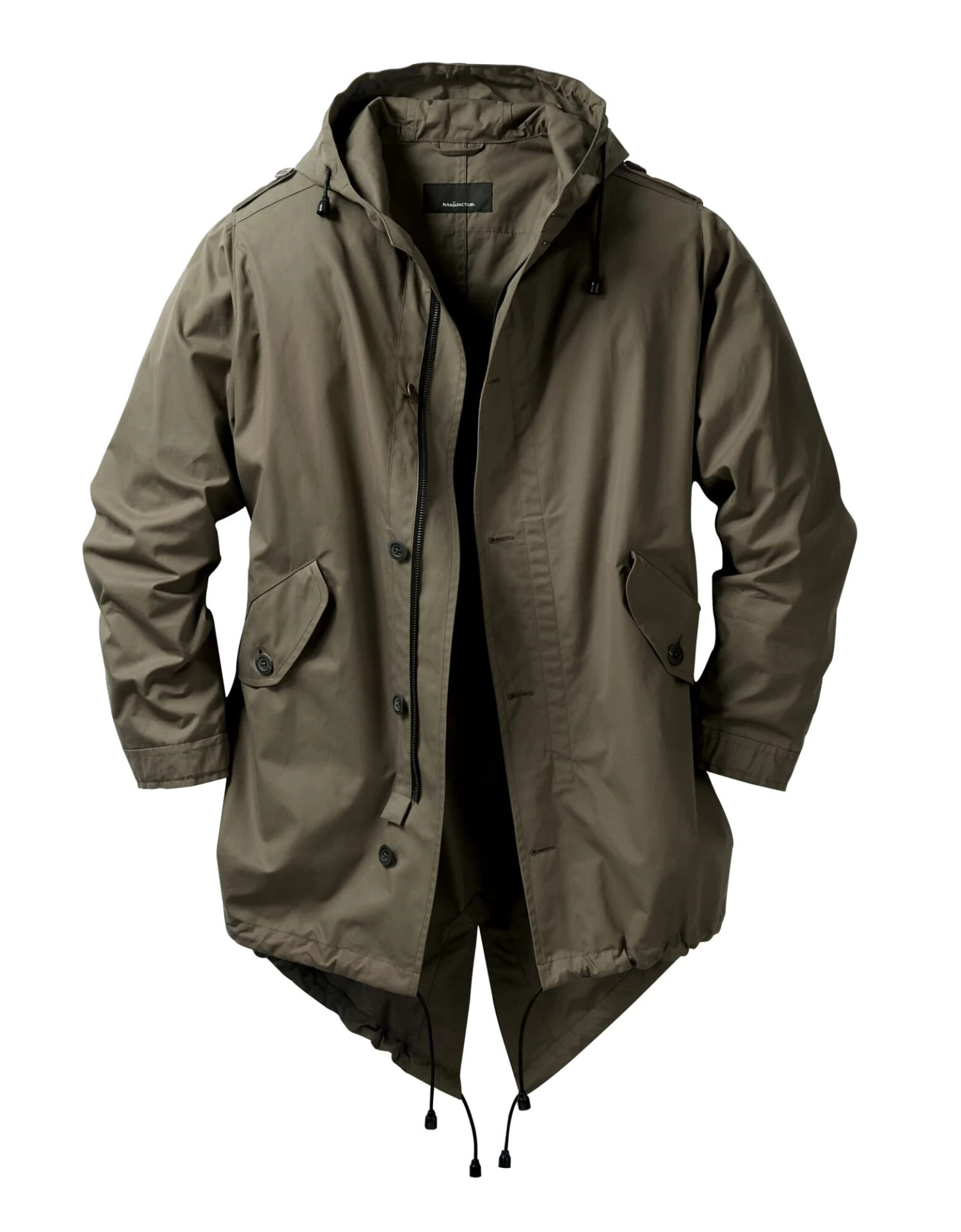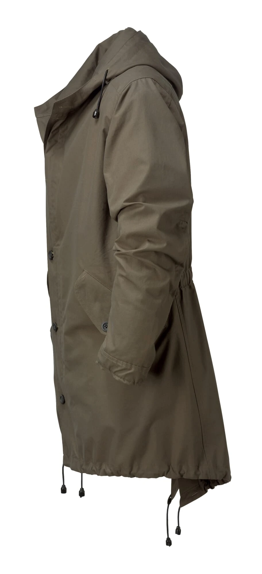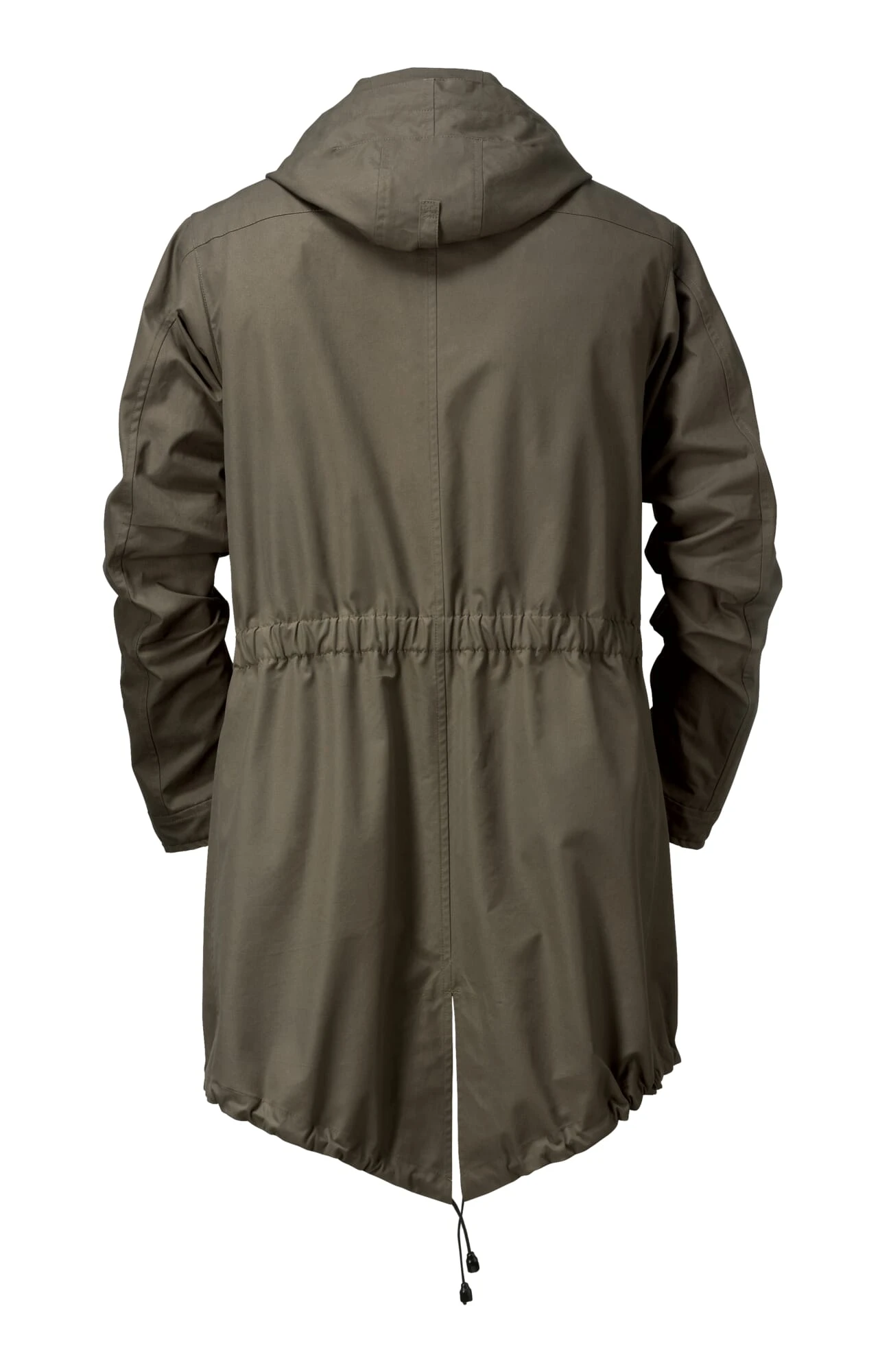 Onze ruim gesneden, ongevoerde parka in EtaProof® kan ook als overjas worden gedragen. Het schouderstuk is verdubbeld, en er is een knoopbaar paneel over de ritssluiting.