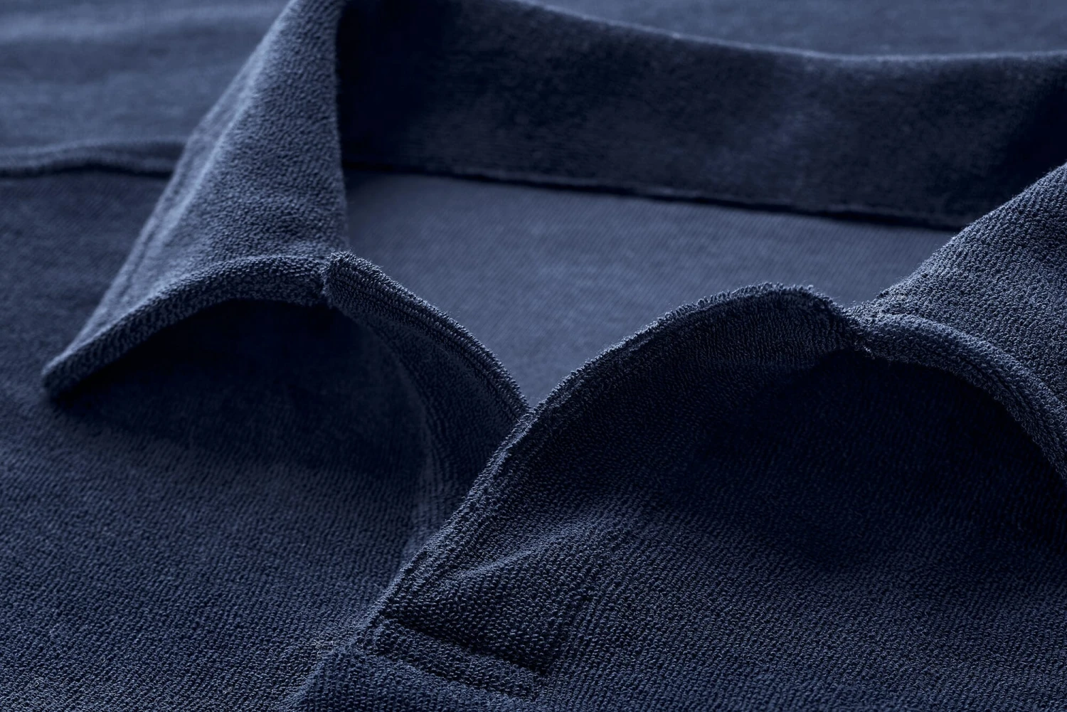 Seldom maakt dit poloshirt van badstof, wat ongewoon is, maar helemaal niet vreemd. Want badstof is niet alleen volumineus en zacht, het is ook luchtdoorlatend en aangenaam airconditionend, omdat het materiaal veel vocht kan opnemen dankzij het vergrote oppervlak door de lussen. De polo zonder knopen heeft een borstzakje en kleine zijsplitten. Het gebruikte katoen is afkomstig van gecontroleerde biologische teelt.