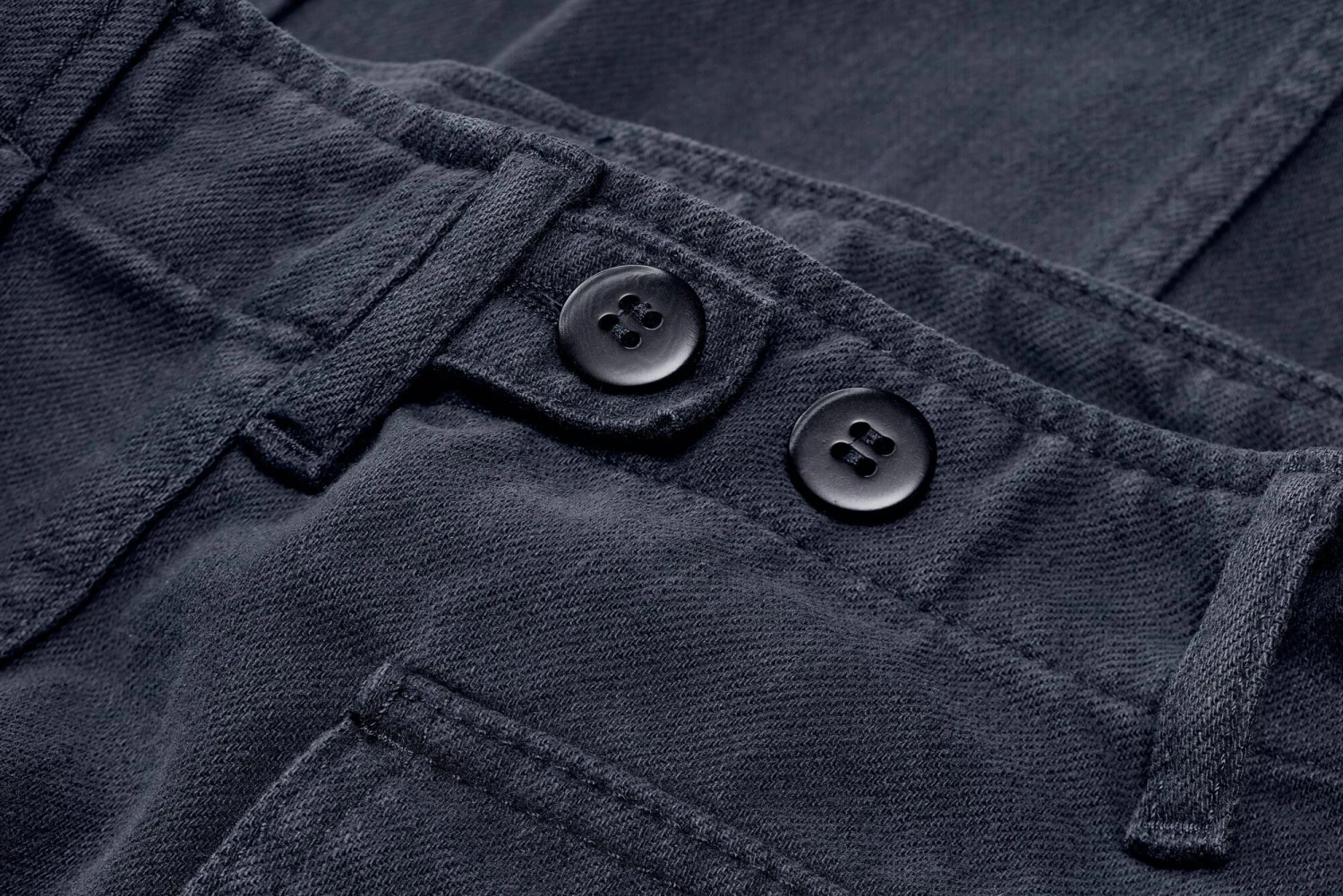 Deze broek is populair vanwege zijn robuustheid en comfortabele pasvorm en is afkomstig van een model dat tussen 1952 en 1963 deel uitmaakte van het reguliere velduniform van de Amerikaanse strijdkrachten – hij kan dus ook door Elvis Presley zijn gedragen. Pike Brothers heeft de vorm, de snit en de sterke visgraatstof ongewijzigd gelaten in de nieuwe editie. Alleen de originele metalen knoppen zijn vervangen door notenhouten knoppen. De broek heeft twee opgestikte zakken aan de voorzijde en twee aan de achterzijde, de laatste zijn afknoopbaar. De wijdte kan matig worden aangepast via een band met knopen.