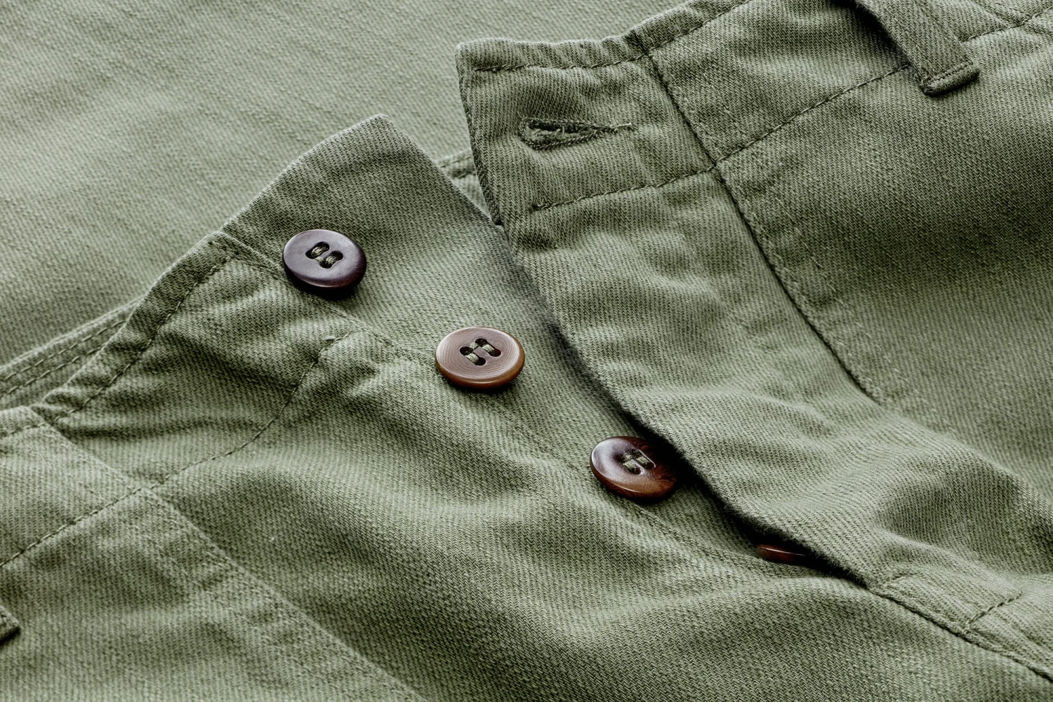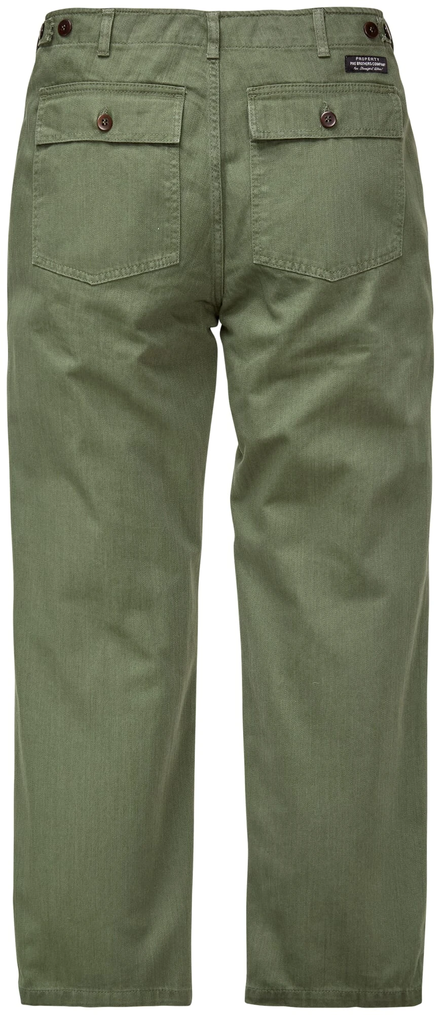 Deze broek is populair vanwege zijn robuustheid en comfortabele pasvorm en is afkomstig van een model dat tussen 1952 en 1963 deel uitmaakte van het reguliere velduniform van de Amerikaanse strijdkrachten – hij kan dus ook door Elvis Presley zijn gedragen. Pike Brothers heeft de vorm, de snit en de sterke visgraatstof ongewijzigd gelaten in de nieuwe editie. Alleen de originele metalen knoppen zijn vervangen door notenhouten knoppen. De broek heeft twee opgestikte zakken aan de voorzijde en twee aan de achterzijde, de laatste zijn afknoopbaar. De wijdte kan matig worden aangepast via een band met knopen.