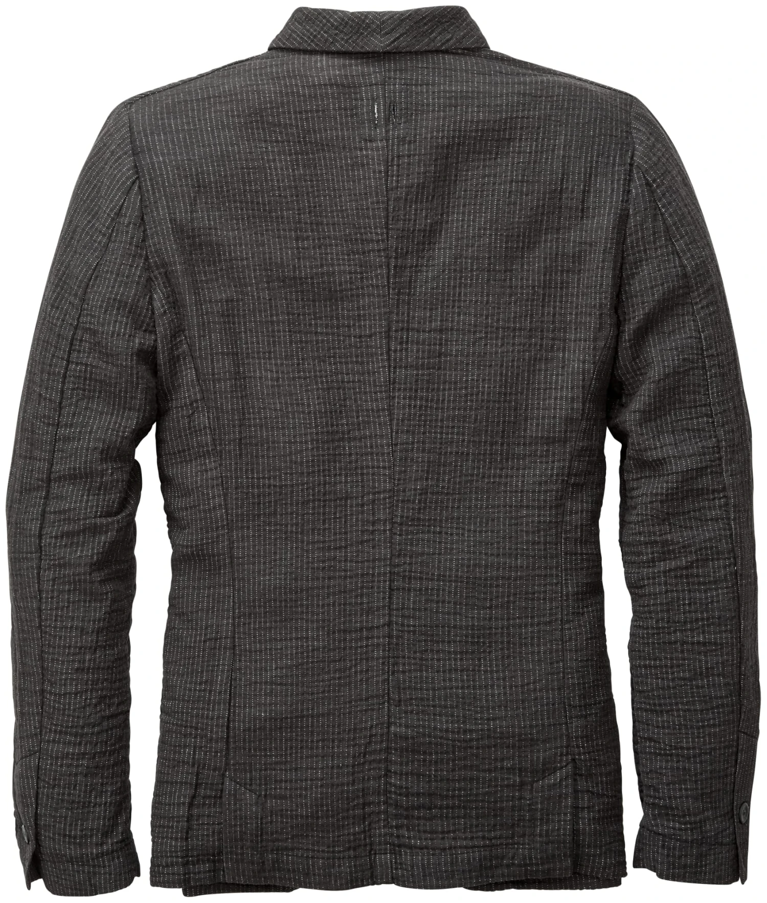 Deze jas – inclusief de voering – is volledig gemaakt van zuiver, huidvriendelijk katoen. Het gekreukte buitenmateriaal geeft de stof en daarmee het jasje een nonchalante uitstraling. Het jasje heeft vormgevende coupenaden aan de voorzijde en een Weense naad aan de achterzijde, en twee korte splitten aan de achterzijde maken het comfortabel om te dragen. Twee opgestikte zakken en een binnenzak houden kleine voorwerpen voor dagelijks gebruik.