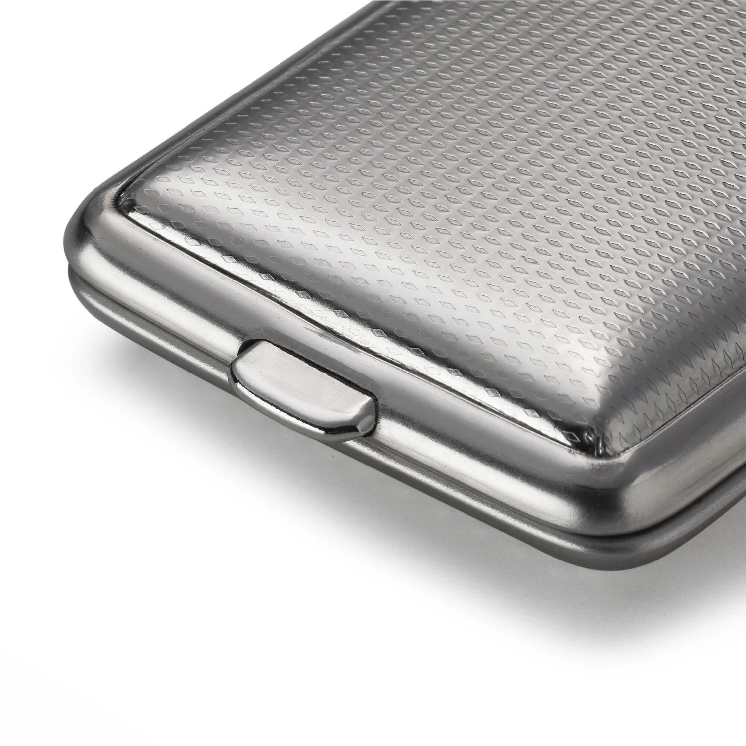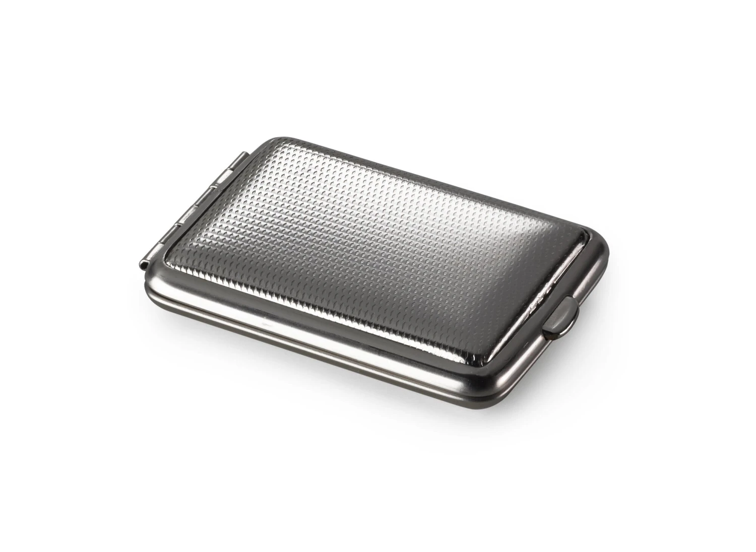 Gemaakt van vernikkeld bandstaal. Gemaakt in Duitsland. Hoogte 1,5 cm, breedte 4,5 cm, diepte 7 cm. Gewicht 35 g. Geleverd zonder inhoud.
