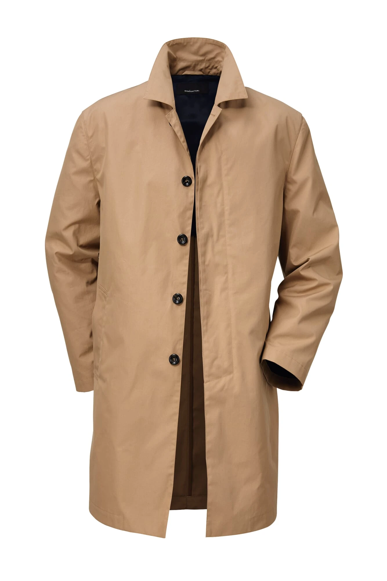 100% katoen (EtaProof®). Gedeeltelijke voering 100% viscose. Bevat niet uit textiel bestaande delen van dierlijke oorsprong: Echte hoornknopen. Gemaakt in Polen. Ruglengte in maat 52 = 103 cm.